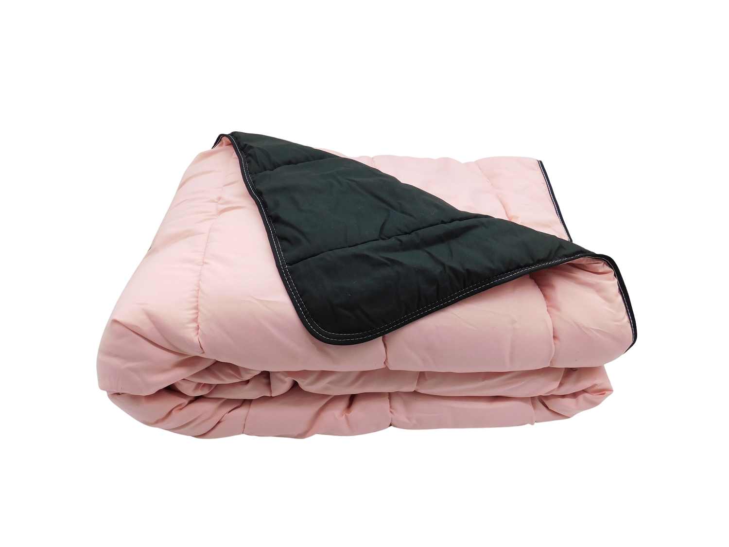 Couette 2 personnes 240 x 260 Tissu : Microfibre 80g : Dessus Noir / Dessous Rose Garnissage : 250grs/m² de fibre creuse siliconée Coins ronds - Double piquage de renfort - Biais Polycoton couleur Vendue dans sa valisette de rangement Fabrication Française par MORTREUX SAS