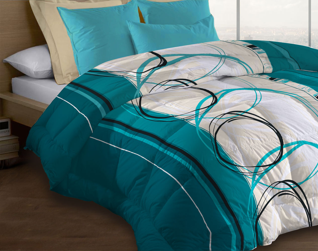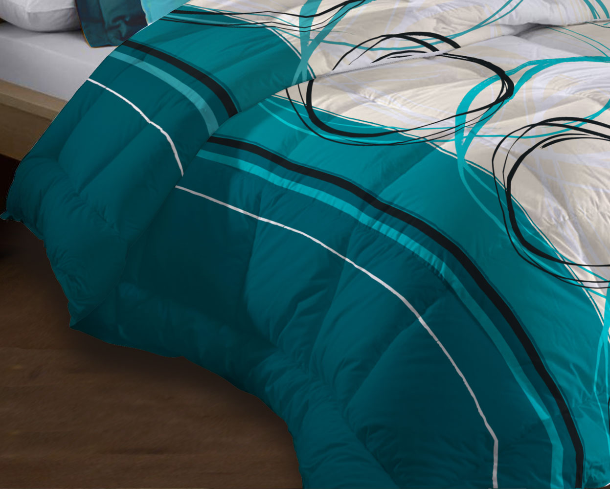 | Libellé | Couette microfibre 220x240 - Imprimée double-face - 550 grs/m2 - Roue libre turquoise |