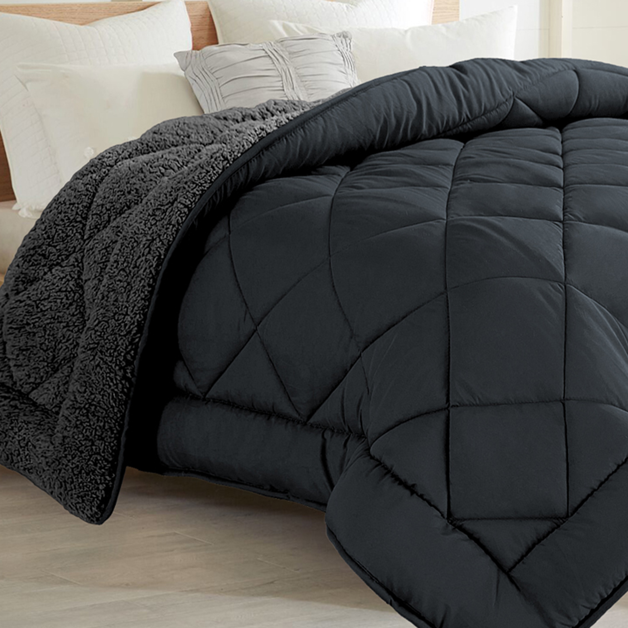 Couette Sherpa Noire 220 x 240 cm | Réversible été/hiver | Utilisable toute l'année |