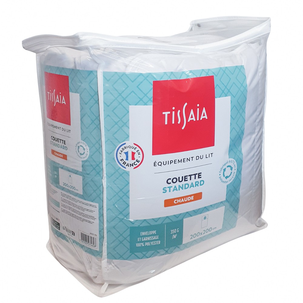 Couette 2 personnes 200x200 cm Standard - Chaude - Coloris Blanc - Enveloppe : 100% Polyester et Garnissage : 100% Polyester - Densité : 350g/m2
