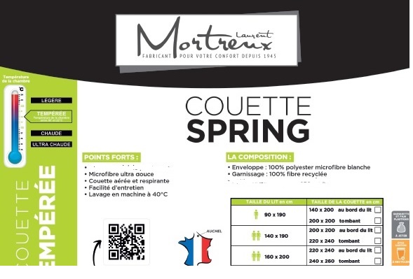 | Libellé | Couette tempérée Blanche - 2 personnes 220x240 - MI SAISON - MORTREUX |