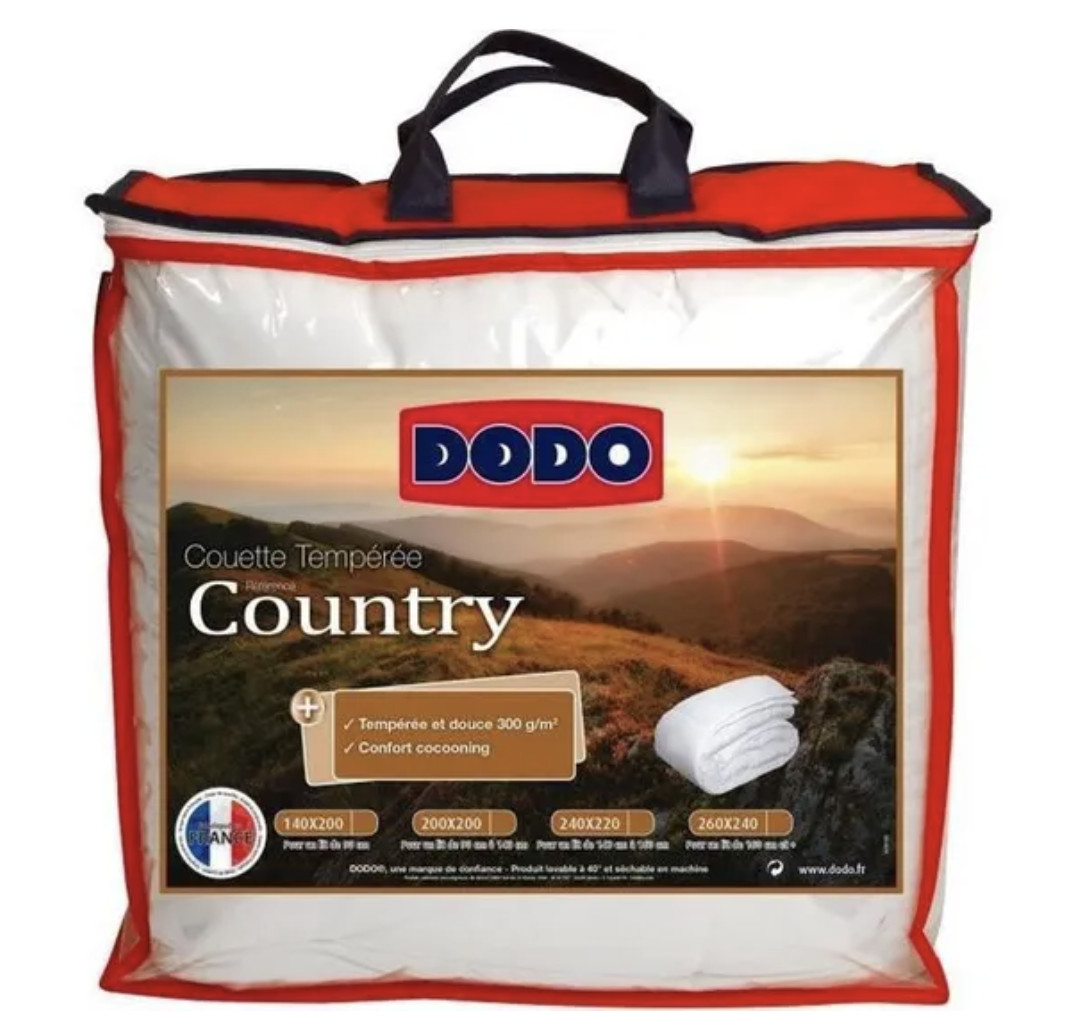 | Libellé | Couette tempérée Country 300 g-m² Dodo - Confort doux pour la mi-saison |