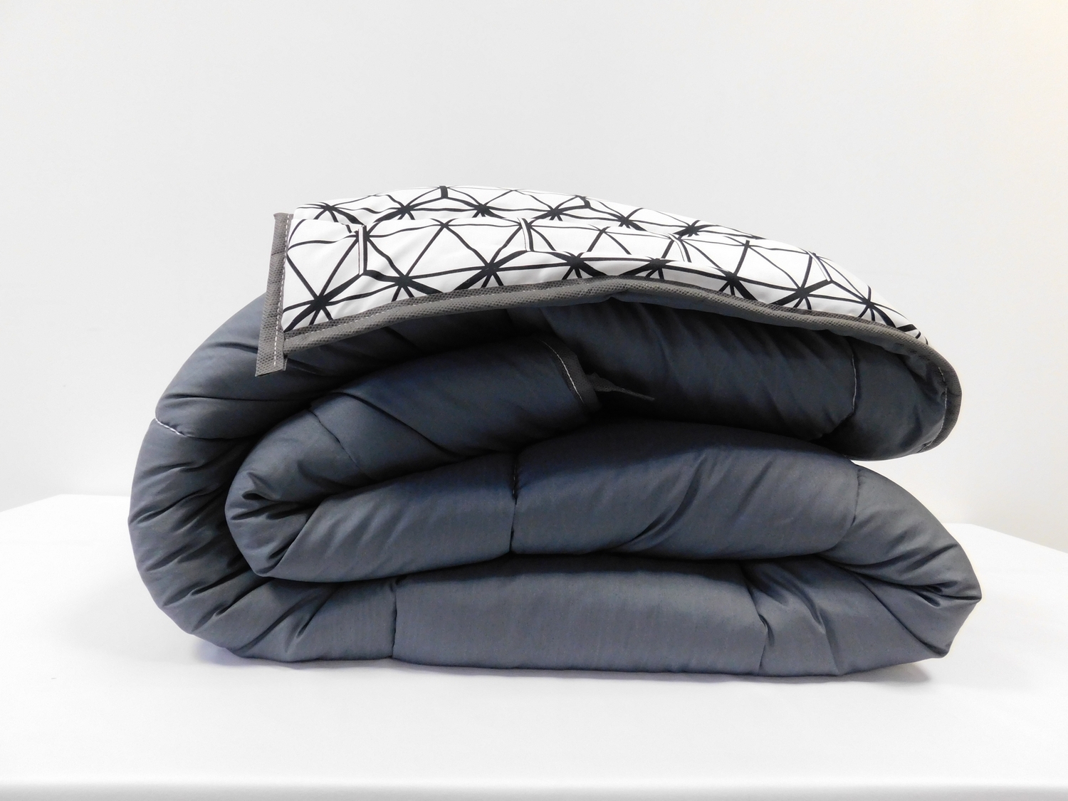 Couette tempérée imprimée/Uni gris Clair - 1personne 140x200 - MI SAISON - MORTREUX