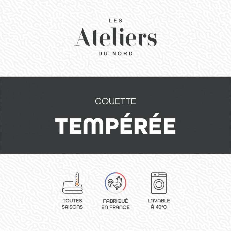 La couette Tempérée Ateliers du Nord sera idéale en toute saison grâce à son garnissage 250gr/m2, notamment au Printemps ou dans des pièces chauffées. Un basique qui conviendra au plus grand nombre. Piquage ligne droite et finition biais.