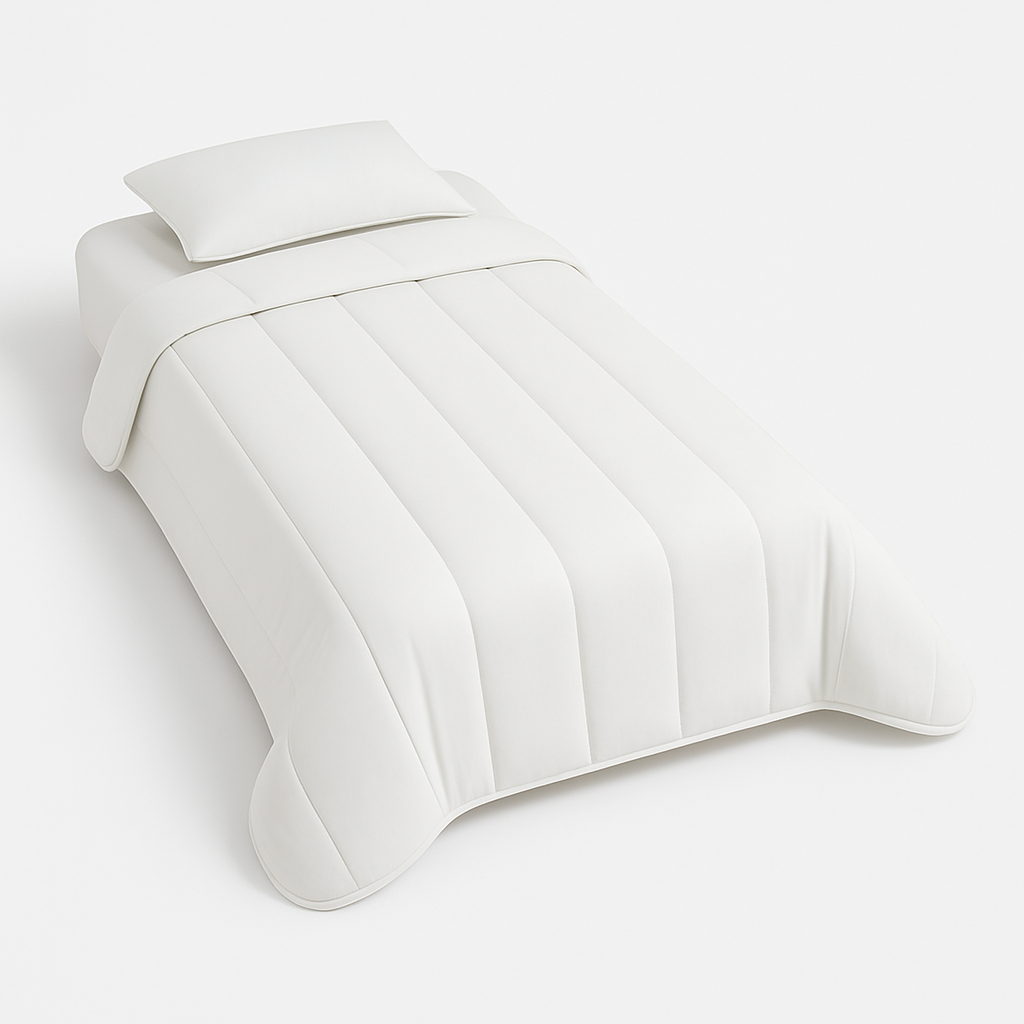 Couette "Toutes Saisons" 140X200 Garnissage : 250 grs/m² de fibre polyester Tissu Microfibre Ultra Douce/Coins ronds Convient à toutes les saisons Vendue dans sa housse de rangement Lavable à 40° Fabrication Française par MORTREUX SAS
