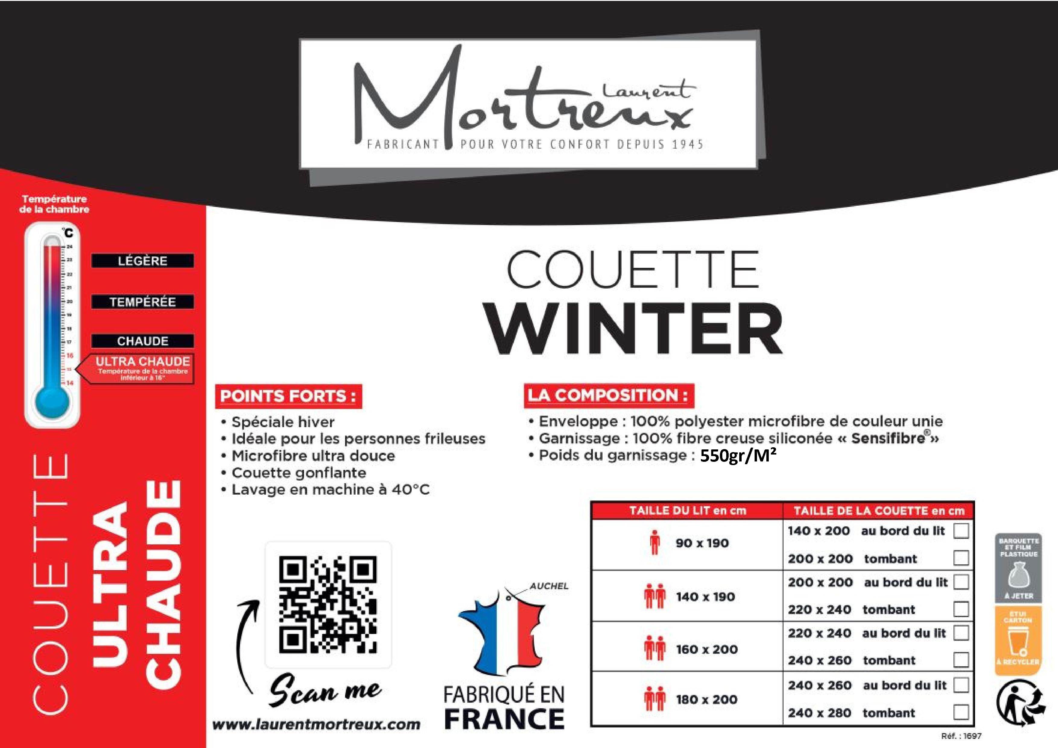 Libellé Couette ultra chaude Microfibre Blanche - 1 ou 2 personnes 200x200 - Spécial Hiver- MORTREUX
