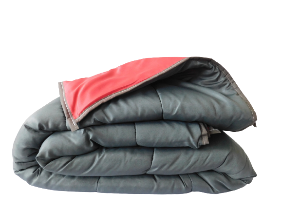 Couette 240x260 Tissu Microfibre Dessus Gris Dessous Rouge Vigne Garnissage 200grs/m² de fibre Polyester Coins carrés-Biais non tissé couleur aléatoire Couette douce et légère pour l'été Fabrication Française par MORTREUX SAS