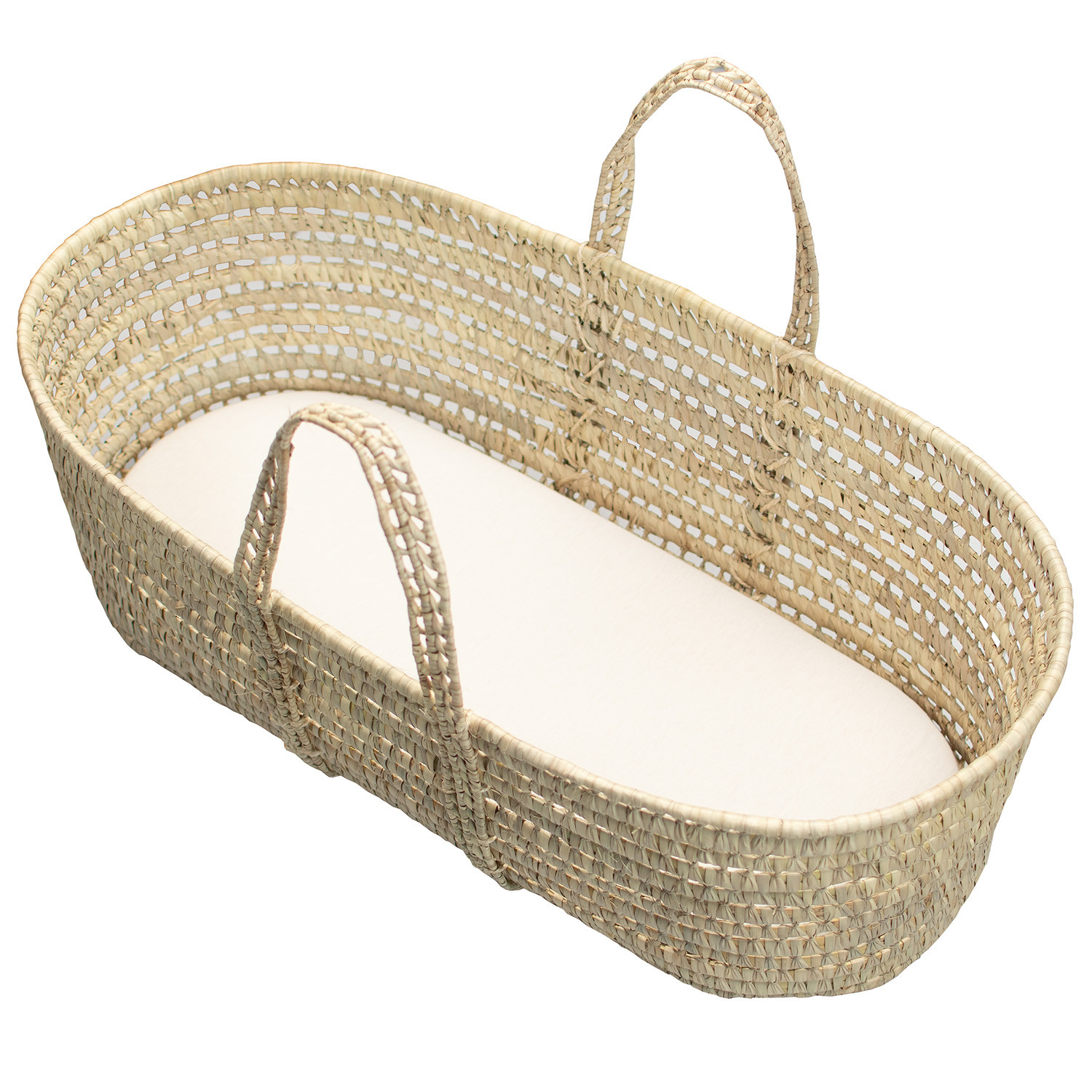 - - Couffin ou panier moïse en fibres naturelles de palmier, tissé à la main