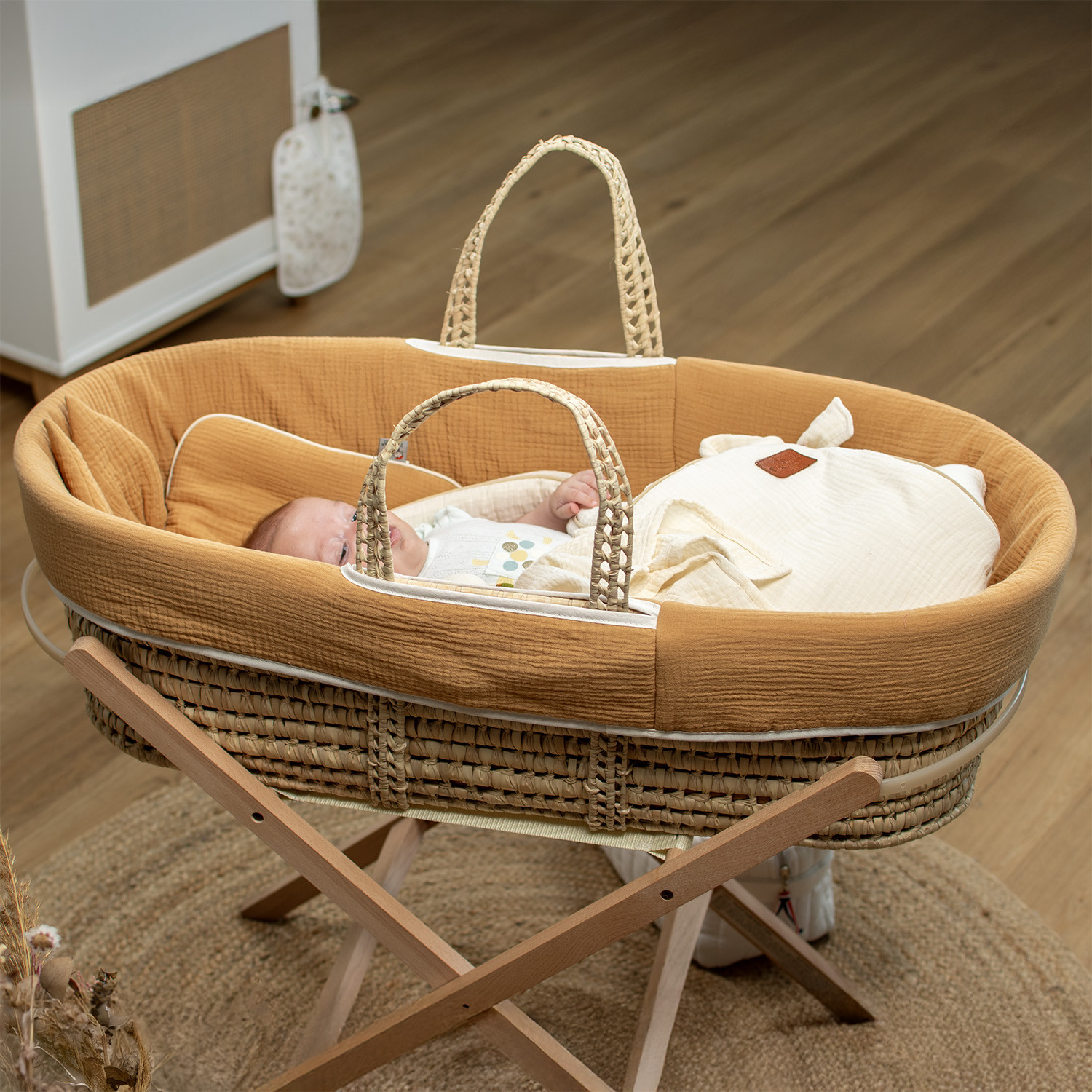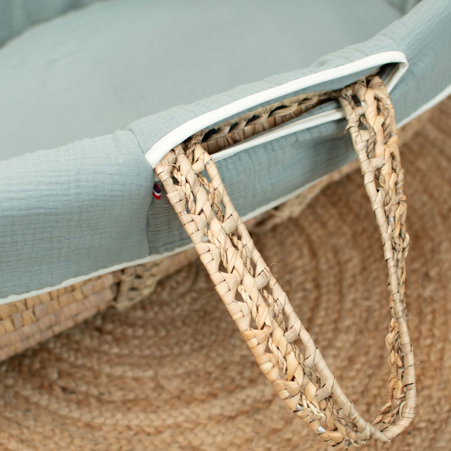 - - Matière : 100% fibres naturelles (panier), linge de couffin 100% gaze de coton, garnissage polyester