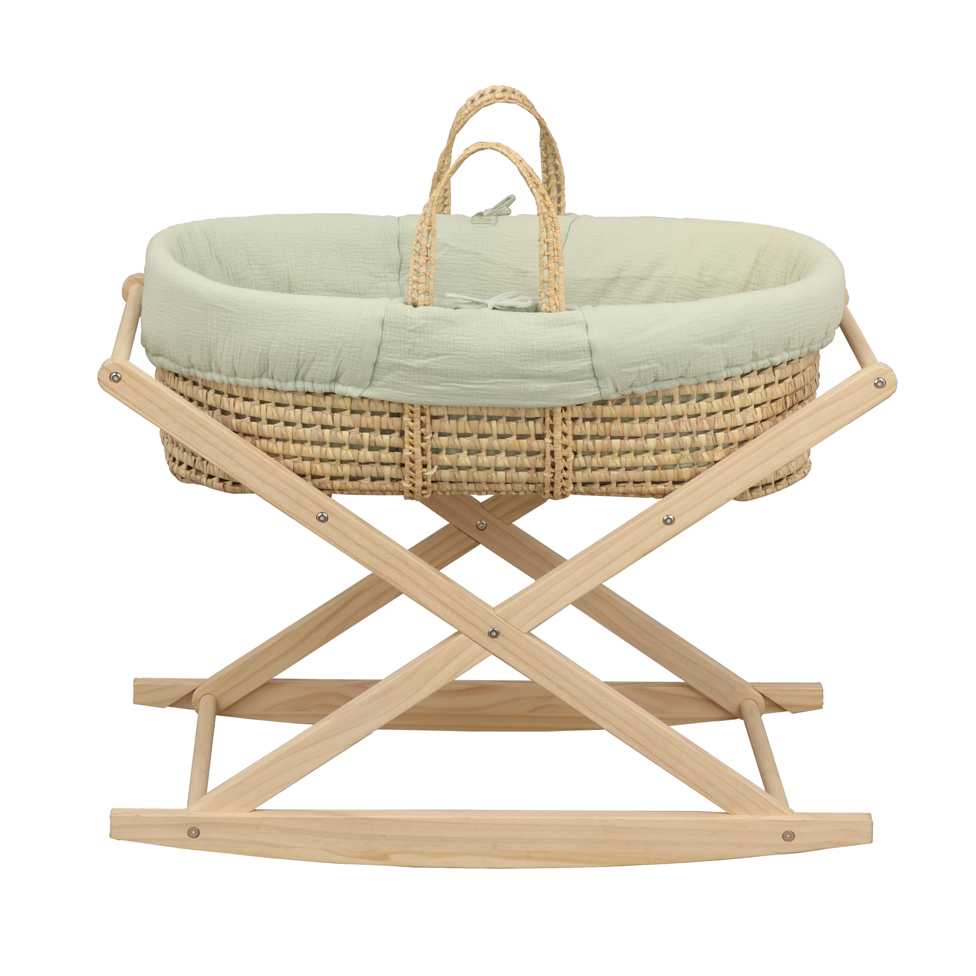 Couffin bébé en fibres naturelles et habillage tissu avec support en pin massif