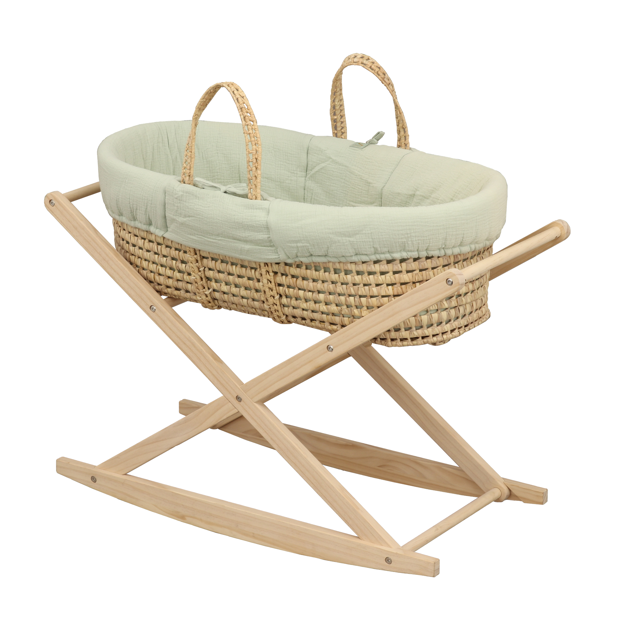 Libellé Couffin bébé en fibres naturelles et habillage tissu avec support en pin massif