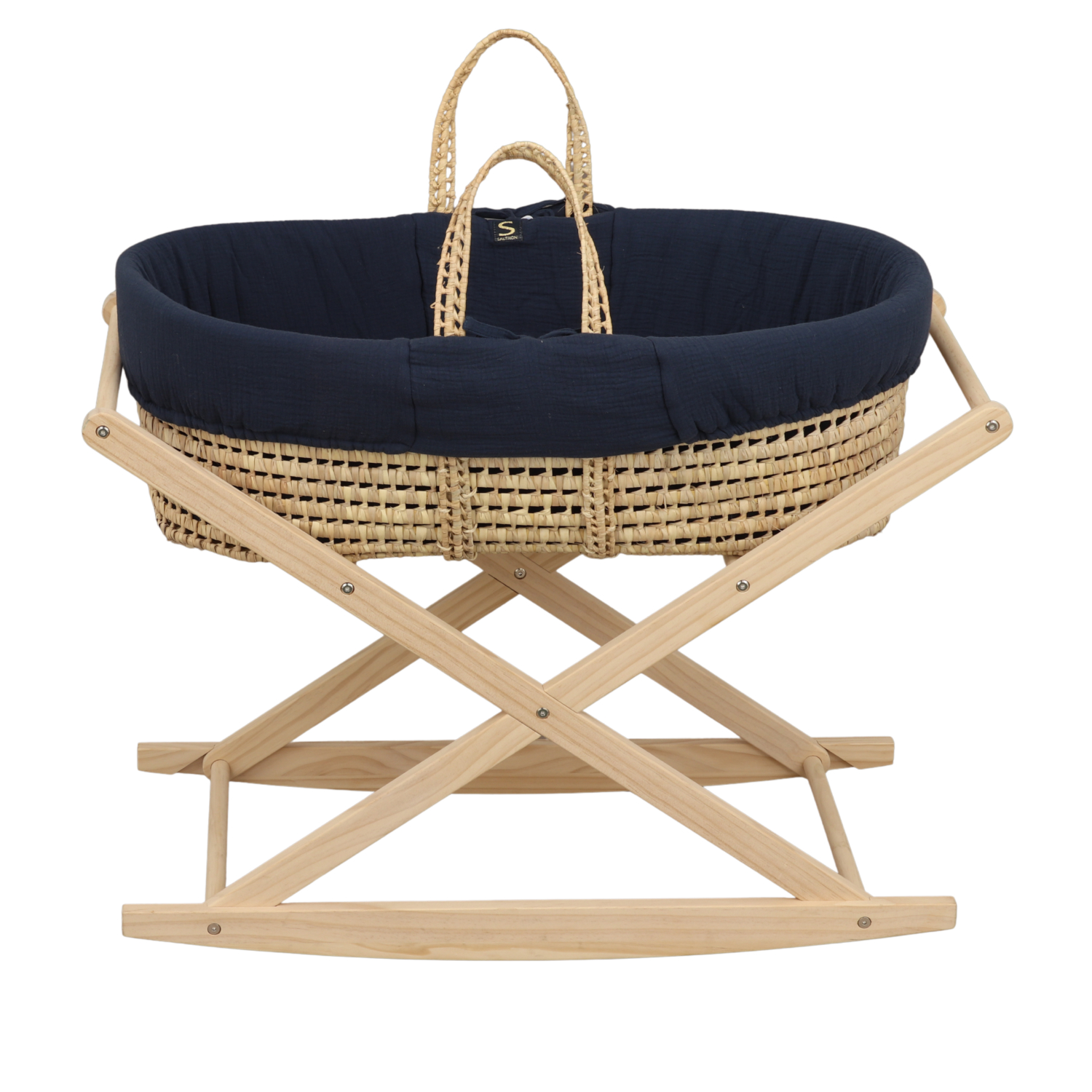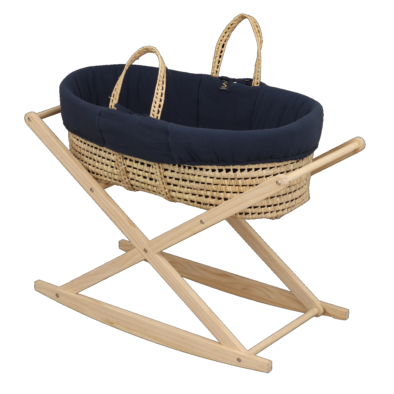 Couffin bébé en fibres naturelles et habillage tissu avec support en pin massif