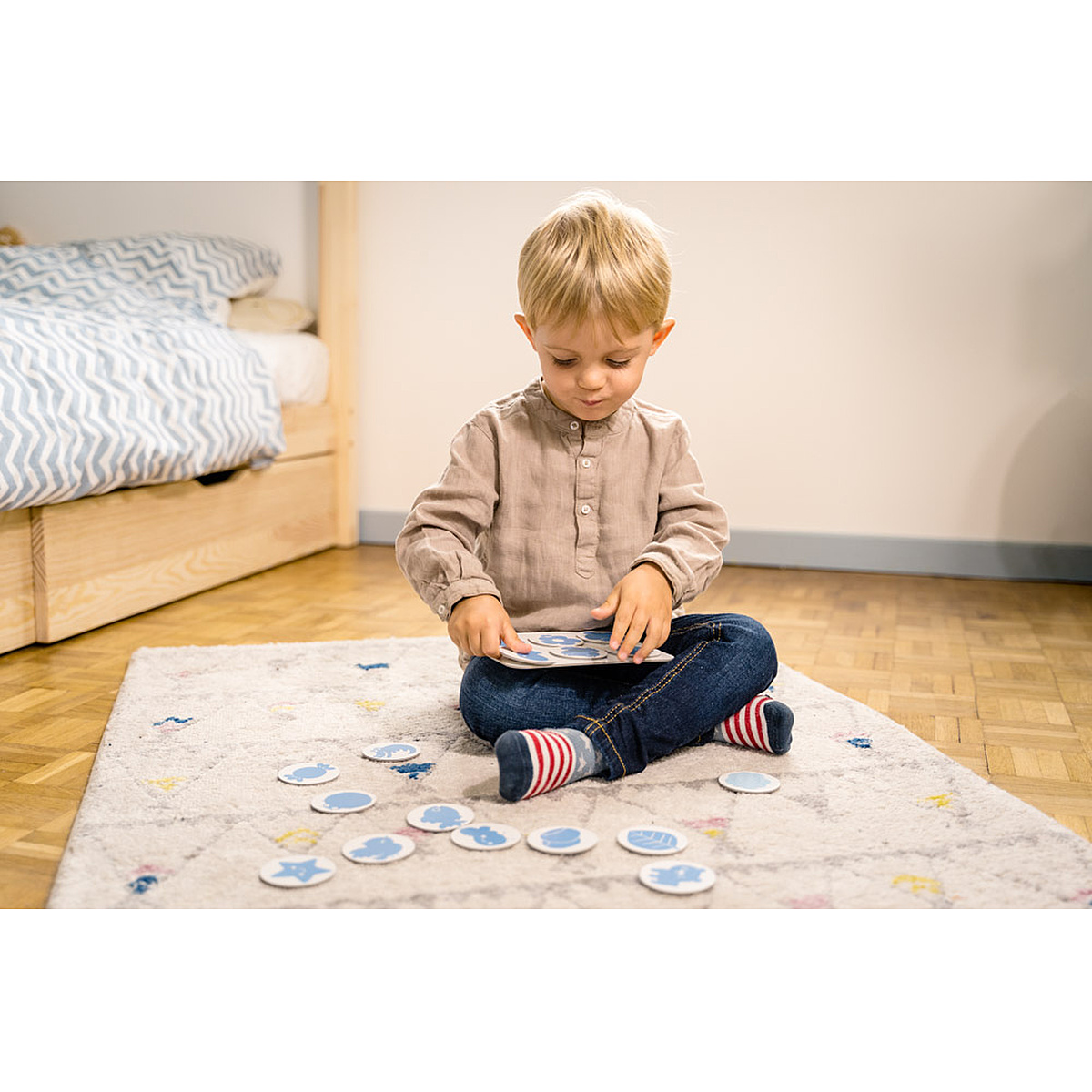 | Plus produit | Un jeu d\'association simple accessible aux plus petits sur le thème des couleurs et formes mais aussi une dimension évolutive permettant de jouer seul ou à plusieurs. |