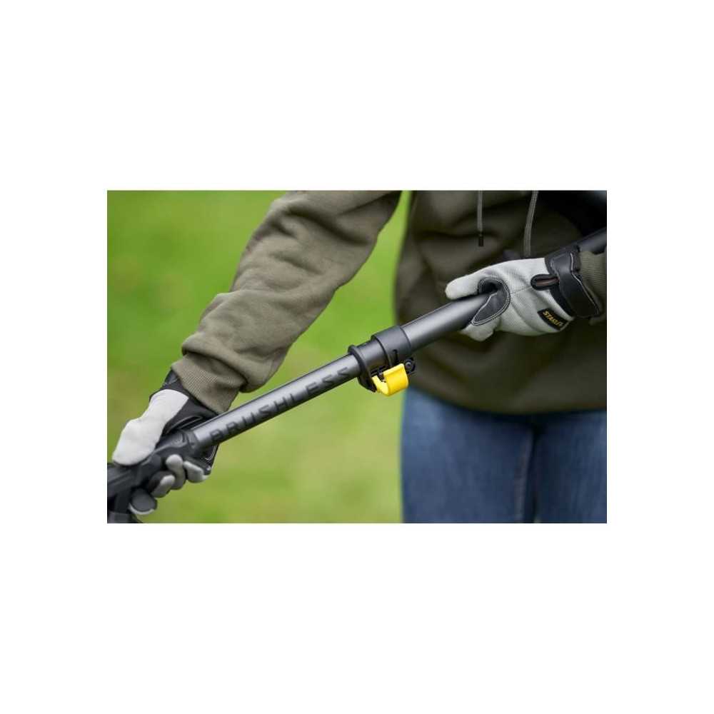 Confort et ergonomie : poignée en D et poignée auxiliaire réglable, tube droit avec réglage par collier et poignée télescopique (305 mm) recouverte de caoutchouc et prise texturée pour réduire la fatigue.