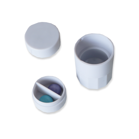 Coupe écrase comprimés 3 en 1 pour ranger, couper et écraser vos médicaments. Pratique et facile à utiliser. 3 fonctions pour 3 utilisations : - Côté coupe comprimés pour couper les comprimés en deux. - Côté écrase comprimés pour écraser les comprimés. - Rangement à deux compartiments pour stocker les comprimés. Utilisation : Placer le médicament dans la partie triangulaire du dessus puis refermer le couvercle pour couper le comprimé. Placer le comprimé dans la partie basse et revisser afin de le broyer. Poids : 42 g. Dimensions : 4,2 x 4,2 x 6,3 cm.