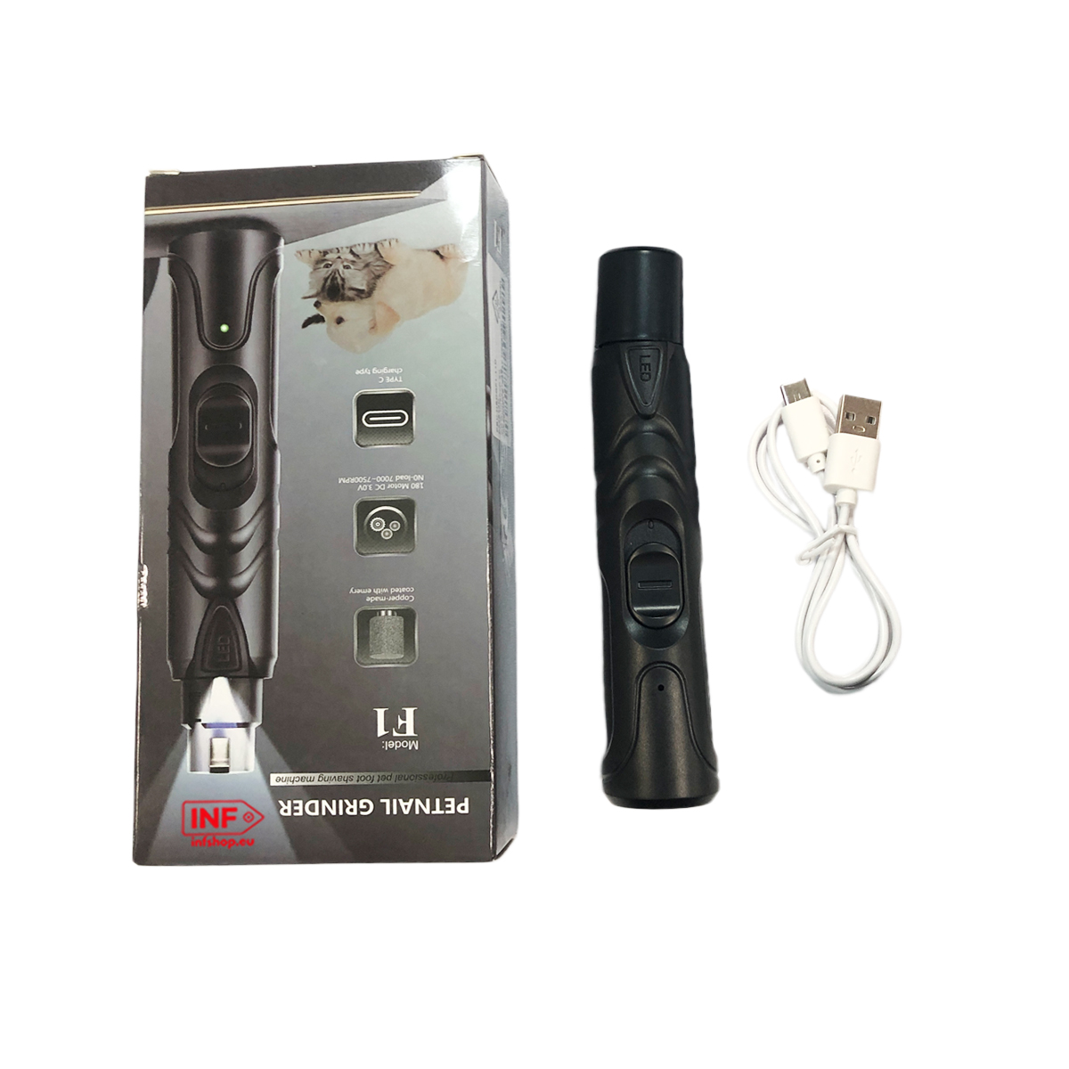 Fonctionnement silencieux : doté d'un moteur à faible bruit, le broyeur à griffes F1 pour animaux de compagnie fonctionne silencieusement, minimisant le stress et l'anxiété de votre animal pendant les séances de coupe des griffes.
