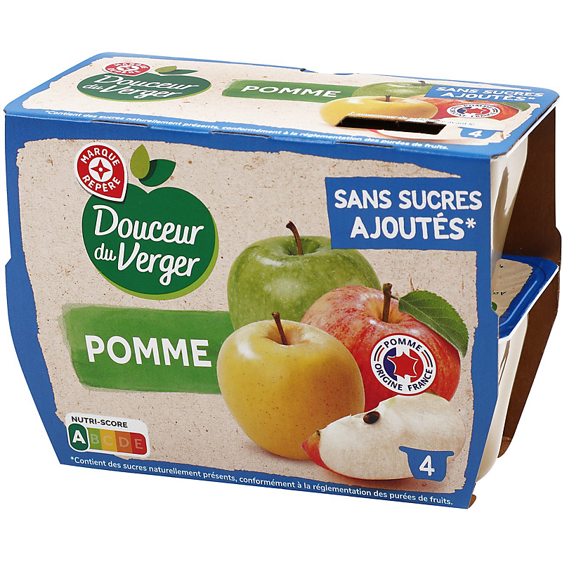 Coupelles sans sucres ajoutés pomme- 4 x 100 g - DOUCEUR DU VERGER