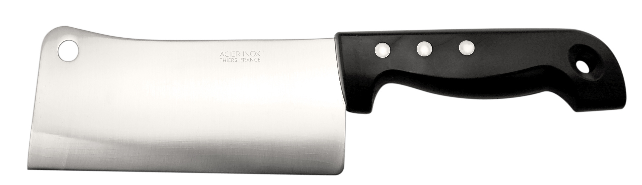 Couperet Pradel. Acier Inox X46 Cr13 , Tranchant Professionnel , 3 Rivets Aluminium , Manche Polypro Haute Résistance