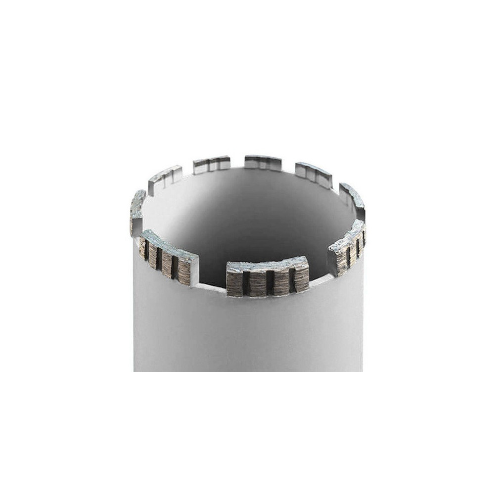 Couronne diamantée avec segments turbo à haut rendement pour un perçage rapide et précis. Segments soudés laser. Convient pour machine : Carroteuse avec système d'arrosage. Utilisation : béton, béton armé (avec armature de D. 20 mm maximum), pierre naturelle, parpaing, brique, béton cellulaire, et autres matériaux de construction. Utilisateurs : Maçon, éléctriciens, plaquistes, et autres métiers. Il est conseillé d'utiliser une bague antiblocage pour couronne afin de faciliter le démontage de l'outil (SW41). Diamètre de la couronne : 77 mm. Longueur utile de la couronne : 400 mm. Emmanchement : 1" 1/4. Hauteur des segments : 10 mm. Nombre de segments : 7. Les produits Diamwood sont haut de gamme pour une utilisation professionnelle et intensive. Ce produit de conception Européenne (Allemagne) répond aux normes en vigueur (EN 13236), le tout à prix d'usine afin d'éviter les intermédiaires. Utilisez ce produit selon les consignes de sécurité et normes européennes machines en vigueur. Diamwood Expert en équipement pour les métiers du BTP maîtrise l'outillage et les machines stationnaires depuis plus de 15 ans.