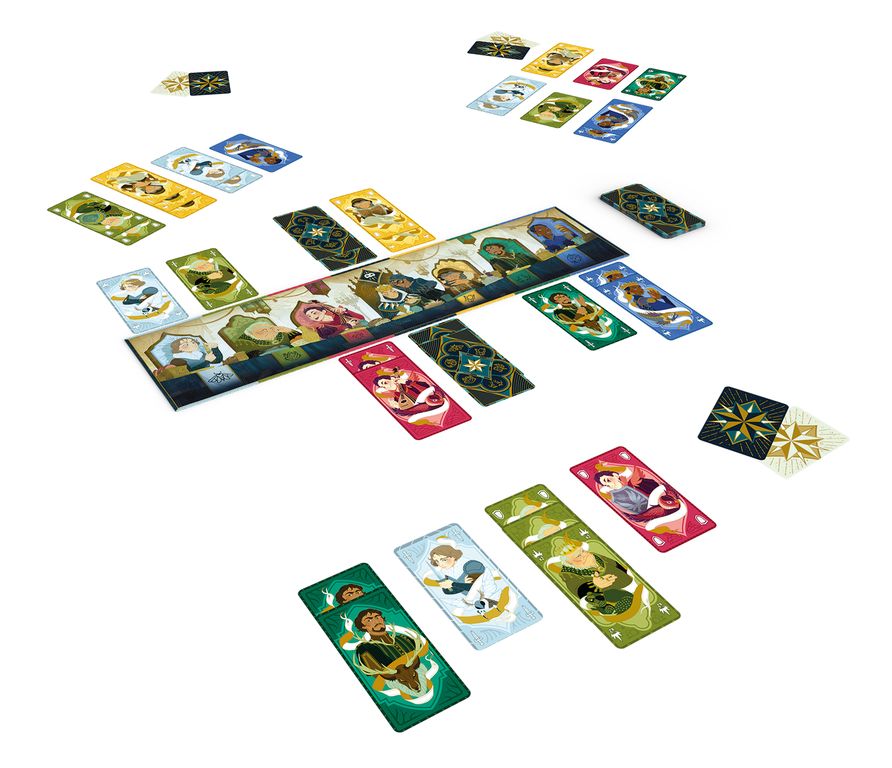 À chaque tour, vous jouez 3 cartes : une à la table de la Reine pour influencer le statut d’une famille, une chez vous et une chez un adversaire. En fin de partie, c’est le rapport de force au banquet qui détermine quelles familles vous rapportent ou vous font perdre des points.