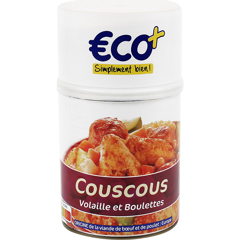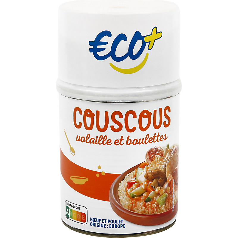 Couscous aux légumes, viande de poulet et préparation à base de bœuf et protéines végétales ECO +