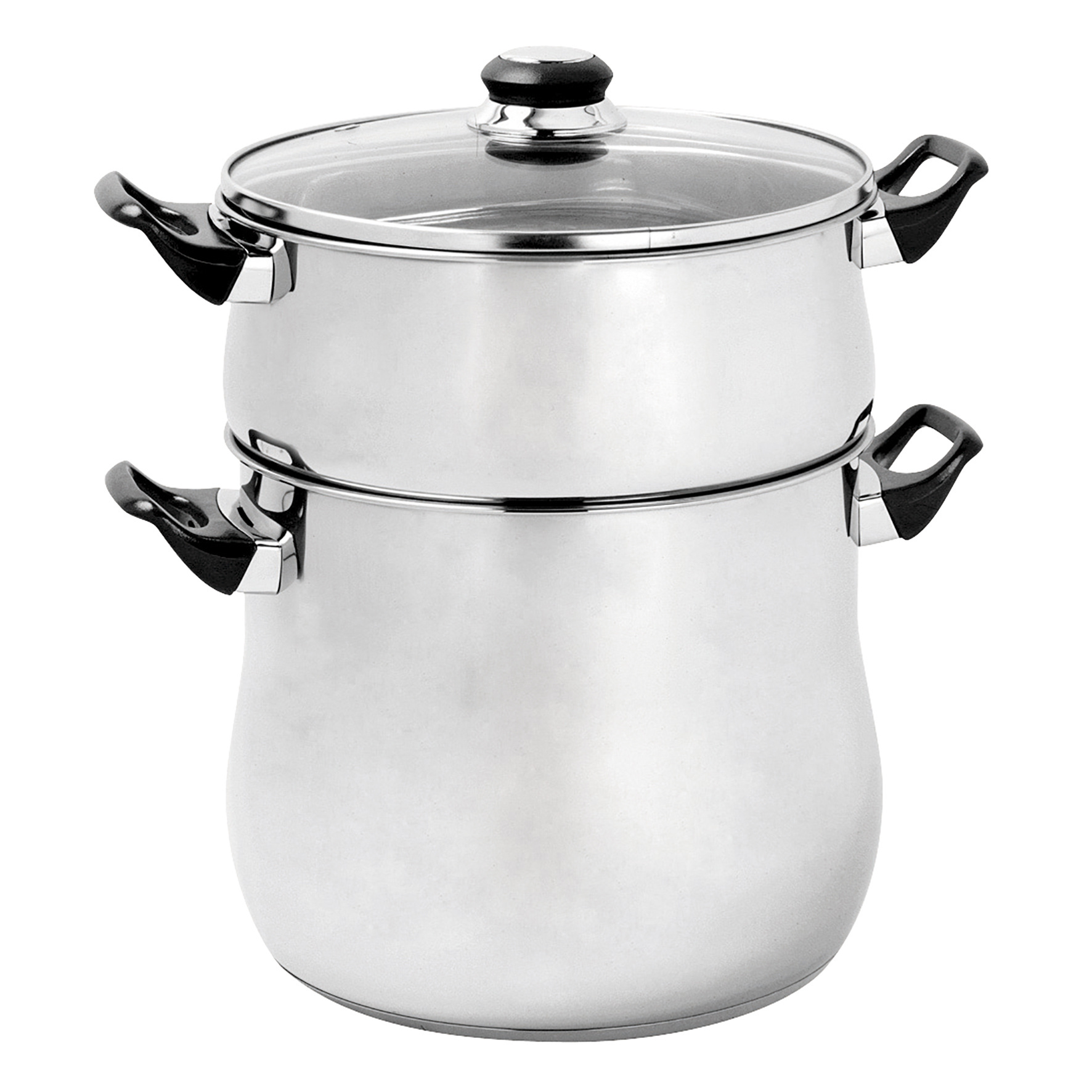 Couscoussier 12 L Inox Gamme Essential Ø 24 Cm H 21 Cm Poignée Thermorésistante Noire 1Er Niveau H 21 Cm