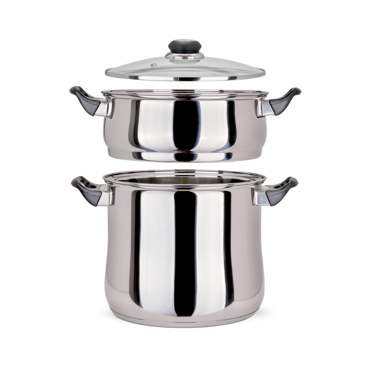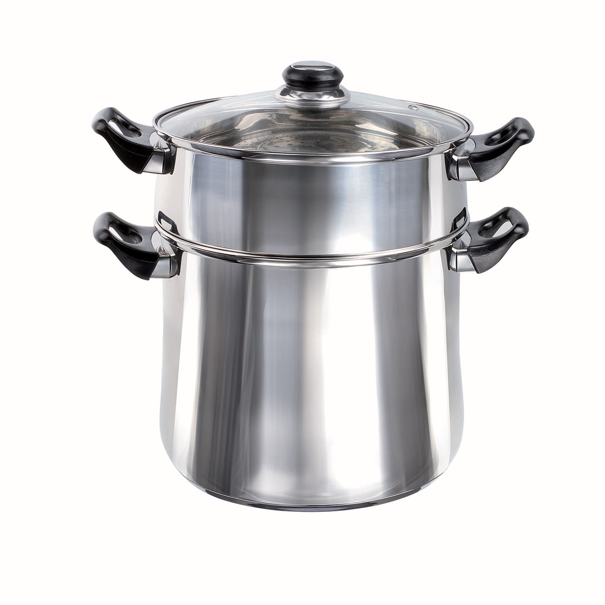 mep119 - couscoussier 24cm - Couscoussier Kitchen Artist MEP119 en acier inoxydable. de diamètre 24 cm avec une capacité de 12 L. Doté d'un panier vapeur, couvercle en verre trempé avec aérateur vapeur et des poignées thermorésistantes. Compatible tous feux dont induction. - Triple fond : inox / aluminium / inox : pour une meilleure répartition de la chaleur.