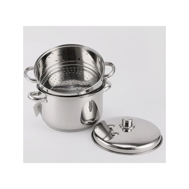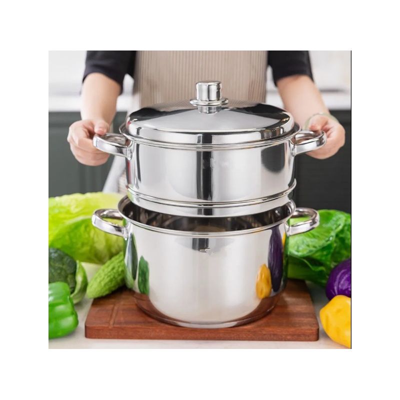 Cette marmite polyvalente est livrée avec un insert vapeur en acier inoxydable, vous permettant de cuire à la vapeur des légumes, des fruits de mer, des boulettes et d'autres délices tout en préservant leurs nutriments, leur texture et leurs saveurs. Les trous de ventilation précisément conçus de l'insert vapeur favorisent un flux de vapeur uniforme, garantissant une cuisson complète. La marmite est équipée d'un couvercle en acier inoxydable bien ajusté et de poignées rivetées qui restent froides pendant l'utilisation, offrant sécurité et commodité pour une grande variété de tâches culinaires, de la cuisson à la vapeur à la cuisson de soupes copieuses.