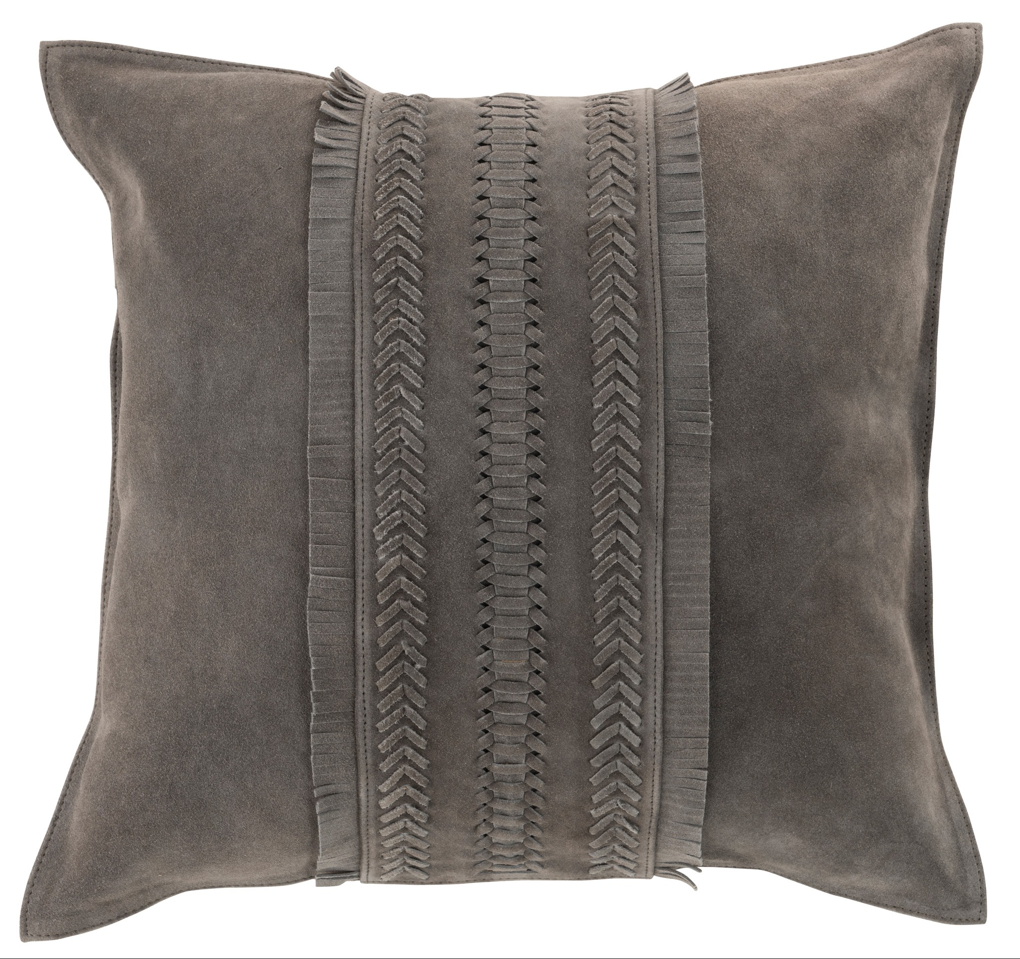 Avec ce coussin vous pourrez ajouter une pointe de folie avec ses belles franges en son milieu. Sa couleur grise est très chic et saura apporter encore plus de beauté à votre chez-soi. Matière : Cuir Couleur : Gris Dimensions : L 43 x P 43 x H 1 cm Poids : 0.86 kg Nombre de colis : 10 Fabrication : Europe