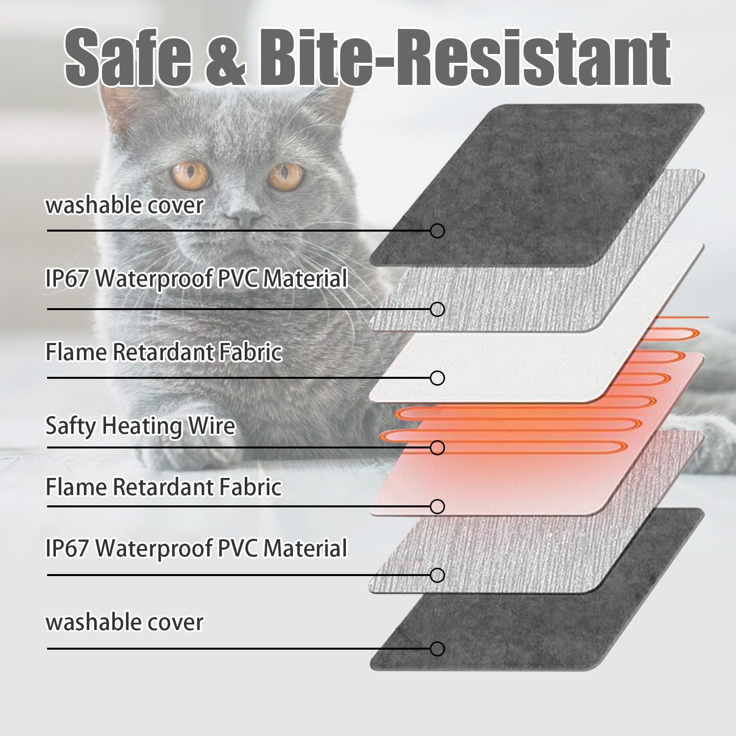Sûr et durable : Le coussin chauffant est équipé d'un cordon anti-mastication et d'un protecteur de fil chauffant interne, qui assure la sécurité de votre animal pendant que le chien ou le chat profite d'un coussin de couchage chaud et confortable.
