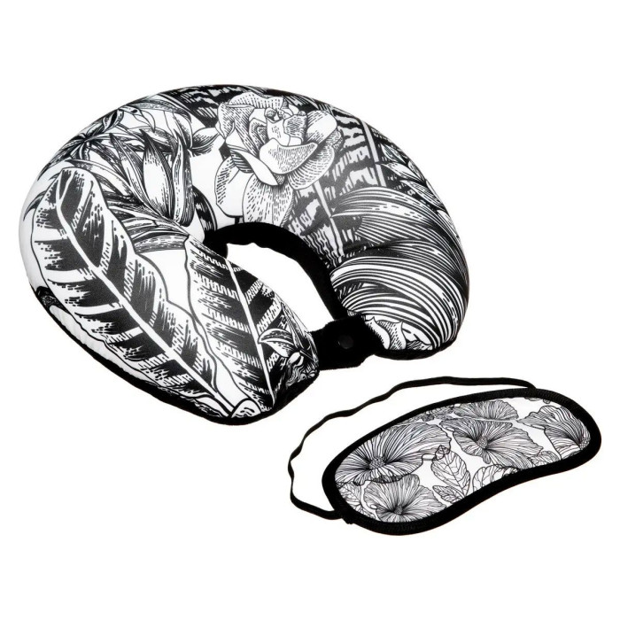 Coussin de Cou & Masque "Blackflora" 28x30cm Noir