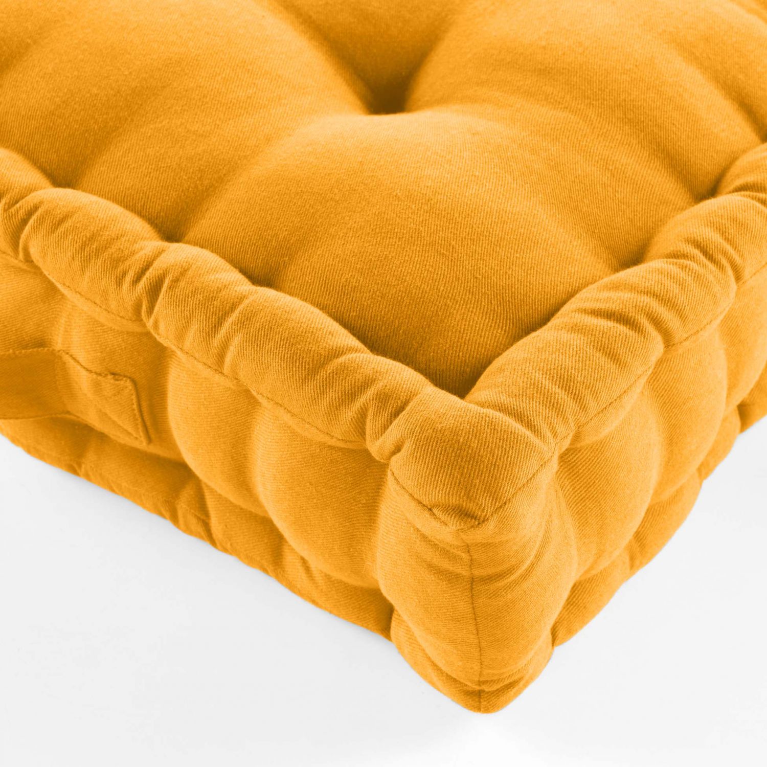 Vous appréciez le confort lors de vos moments de détente chez vous ou en extérieur ? Découvrez tout ce qu'il faut savoir sur le coussin de sol carré d'une dimension de 50x50 cm, d'une hauteur de 10 cm. Ce coussin est composé à 60% de coton et 40% de polyester recyclé, arborant un coloris uni et doté d'une poignée de transport pour allier praticité et esthétique.