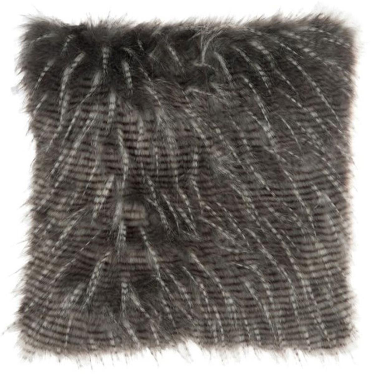 Coussin Déco Imitation Fourrure "Lignes" 45 Gris