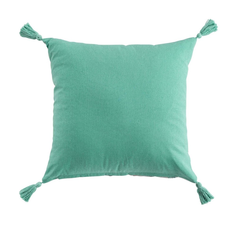 Coussin déhoussable pompons 45x45 cm Jardin Secret sauge coton.