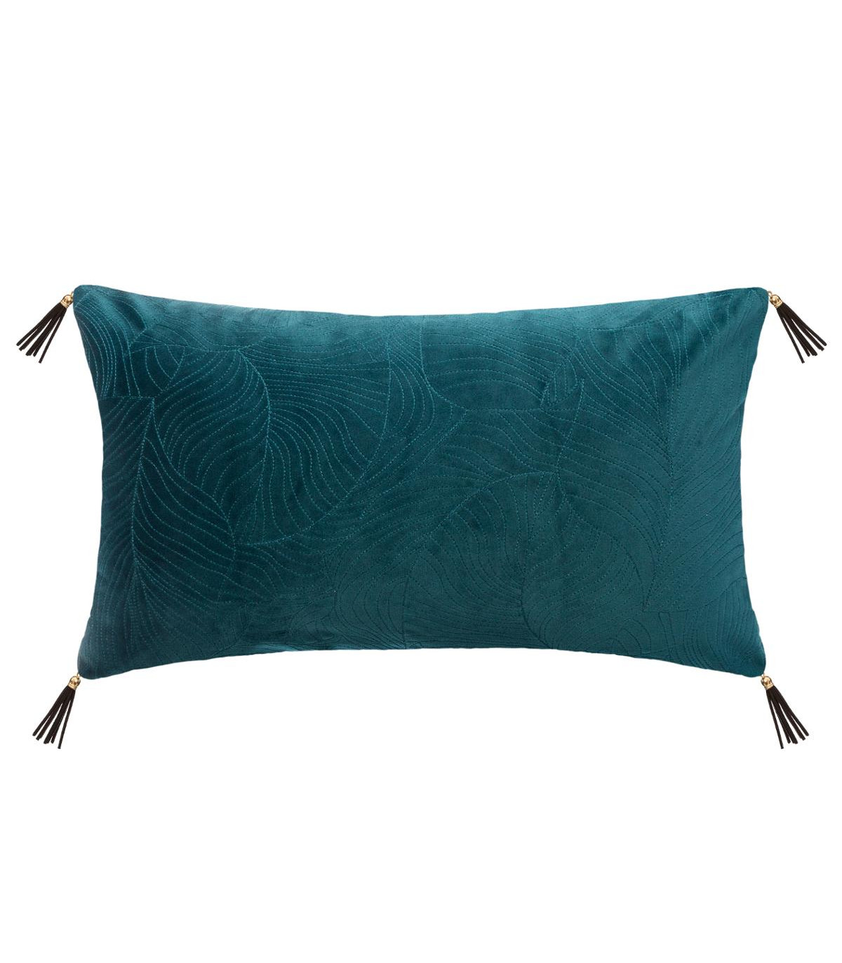 | Libellé | Coussin déhoussable Velours Bleu canard avec Pompons 30 x 50 cm |