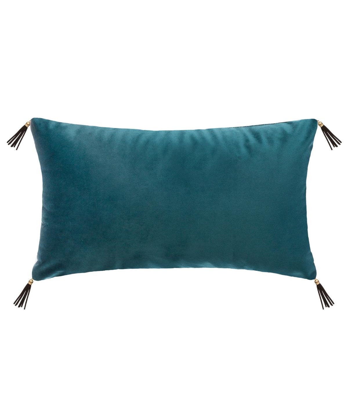 Coussin déhoussable Velours Bleu canard avec Pompons 30 x 50 cm --