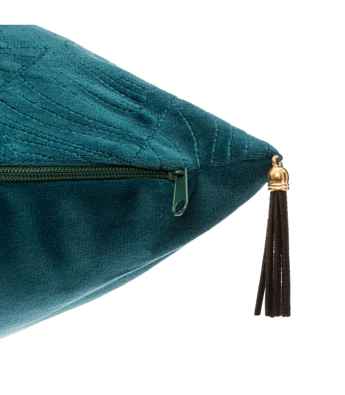 Coussin déhoussable Velours Bleu canard avec Pompons 30 x 50 cm