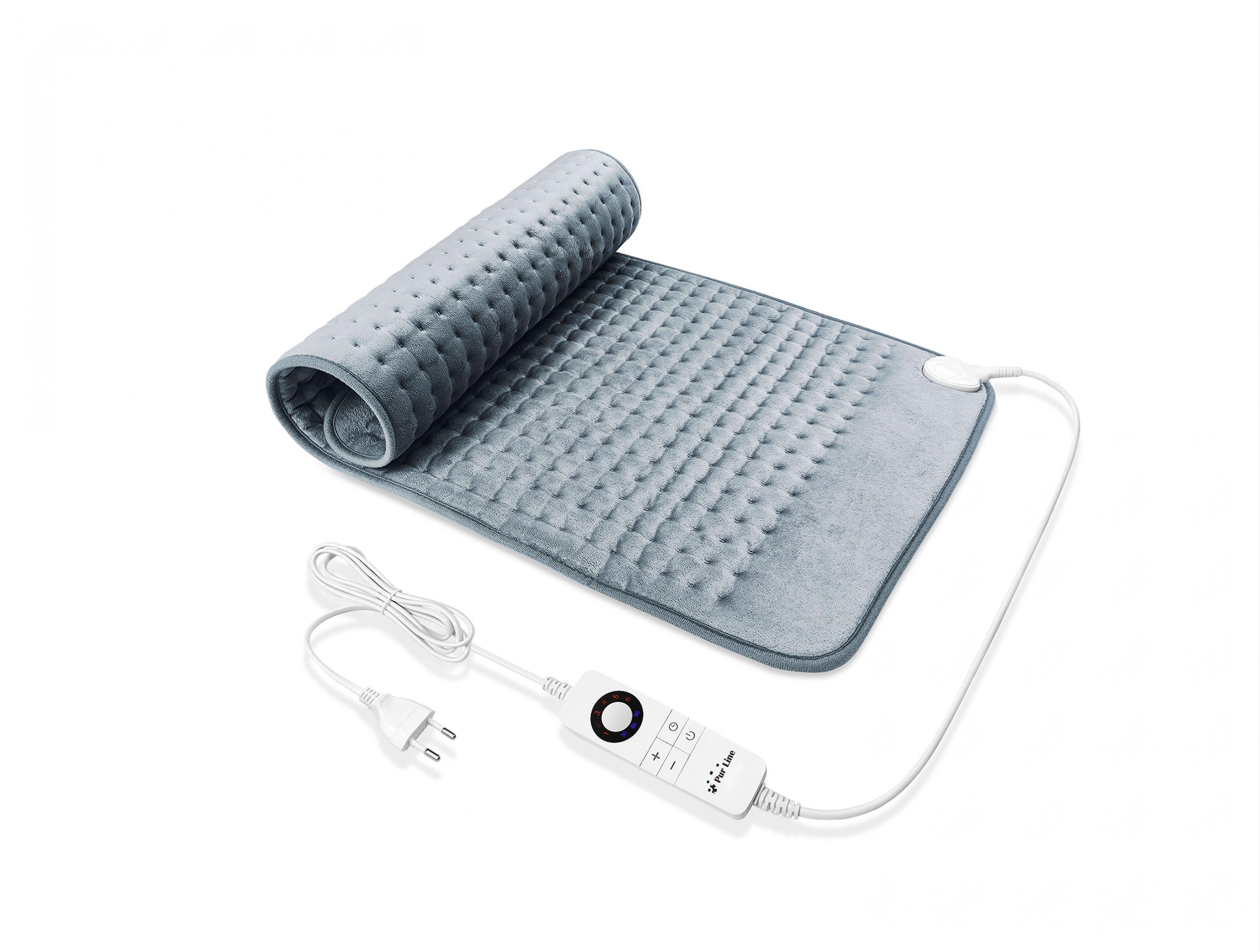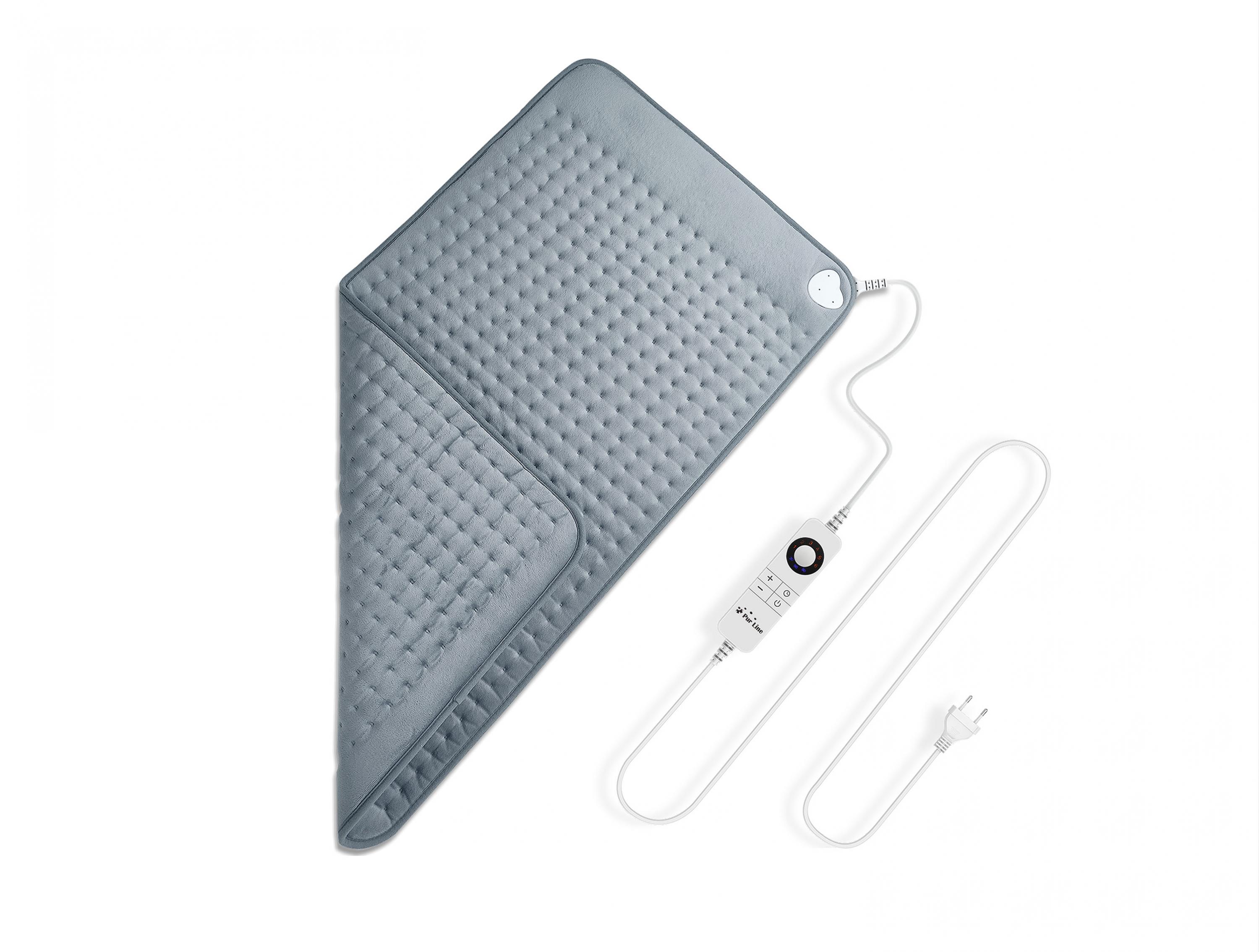 Fabriqué en laine synthétique grise, très agréable au toucher, il chauffe rapidement en atteignant une puissance de 100W et dispose de 6 niveaux pour contrôler la température, vous pouvez également programmer son arrêt automatique après 30, 60 ou 90 minutes.