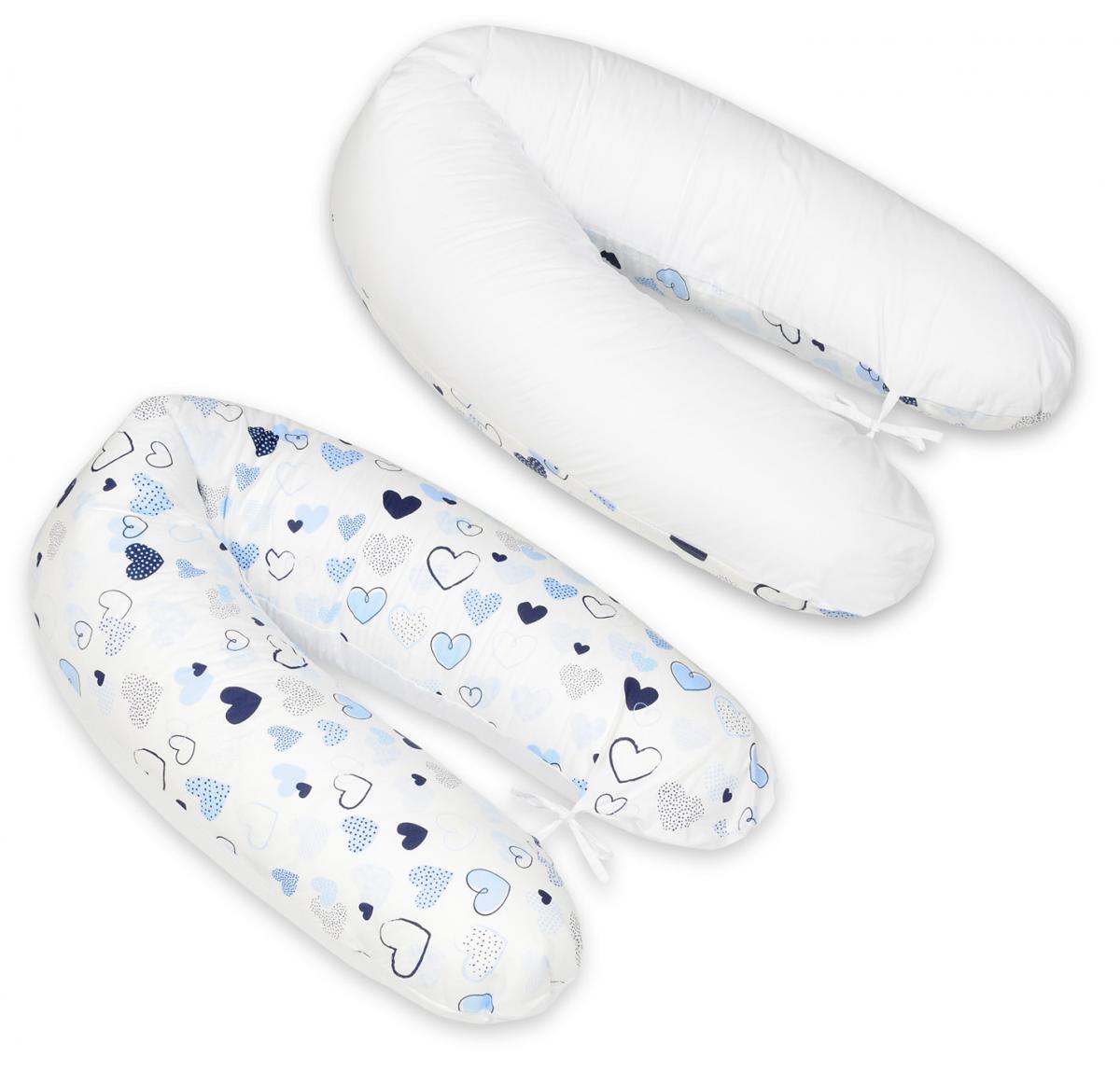 Coussin maternité pre/post natal usages multiples Coeurs bleus blanc