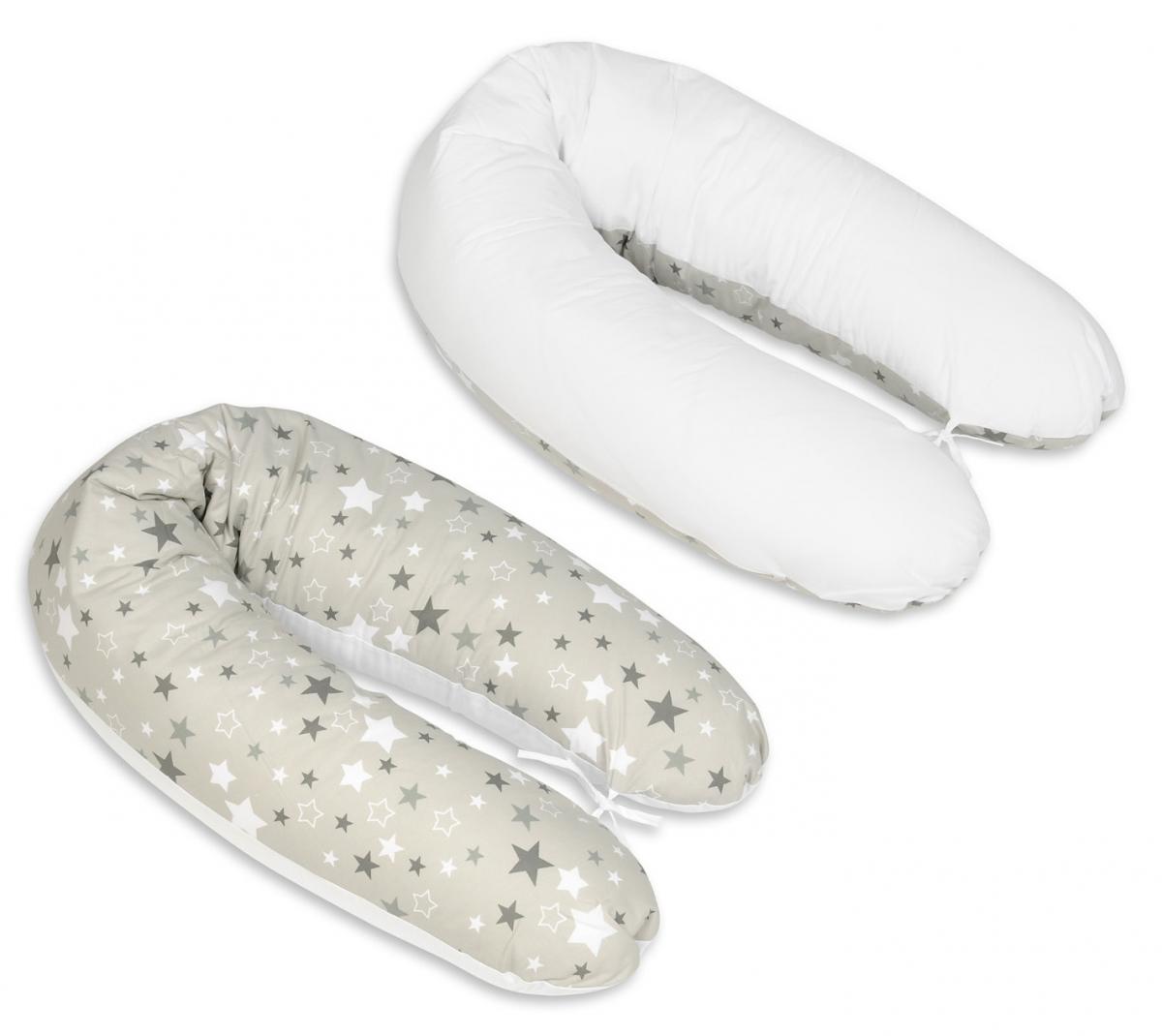Coussin maternité pre/post natal usages multiples Etoiles girses et blanches sur fond gris blanc