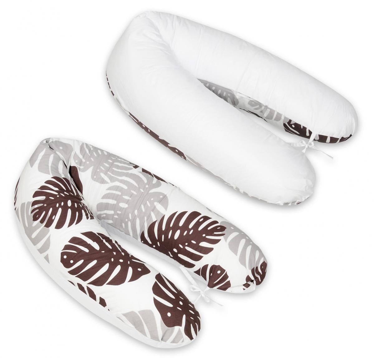 Coussin maternité pre/post natal usages multiples Feuilles grises et marrons blanc