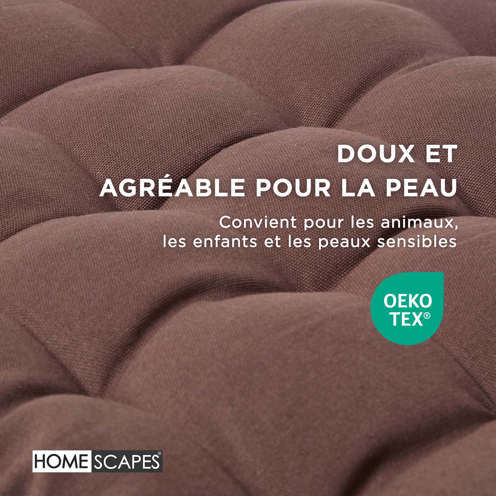 Craquez pour ce coussin pour banc de jardin capitonné qui apportera une touche de modernité été de couleur à votre jardin ou votre balcon. En 100% coton, ce coussin est à la fois doux et sain, le coton étant une matière naturelle. De plus le garnissage dense en fibres de polyester offre assise confortable et une longue durée de vie du produit. Ce coussin polyvalent peut être utilisé comme coussin d'assise pour un banc, sur une chaise longue ou comme matelas de sol. Il est également possible de combiner deux coussins pour créer une assise avec dossier. Homescapes propose une large sélection de linge de maison et les nappes, serviettes de table et galettes de chaise assorties sont disponibles sur notre boutique. Ce matelas de sol est également disponible en 9 coloris et 2 tailles (deux places 108 x 42 x 5 cm et trois places 143 x 48 x 5 cm). Ce matelas n'est pas imperméable ou déperlant, nous vous conseillons donc de le ranger à l'abri de l'humidité et si possible en intérieur après usage.