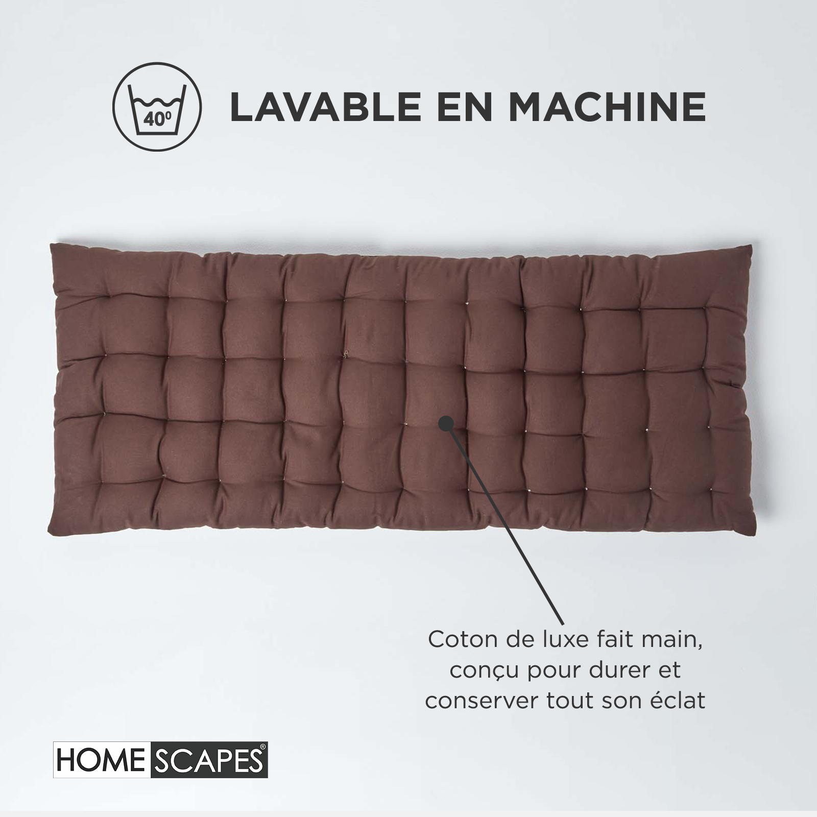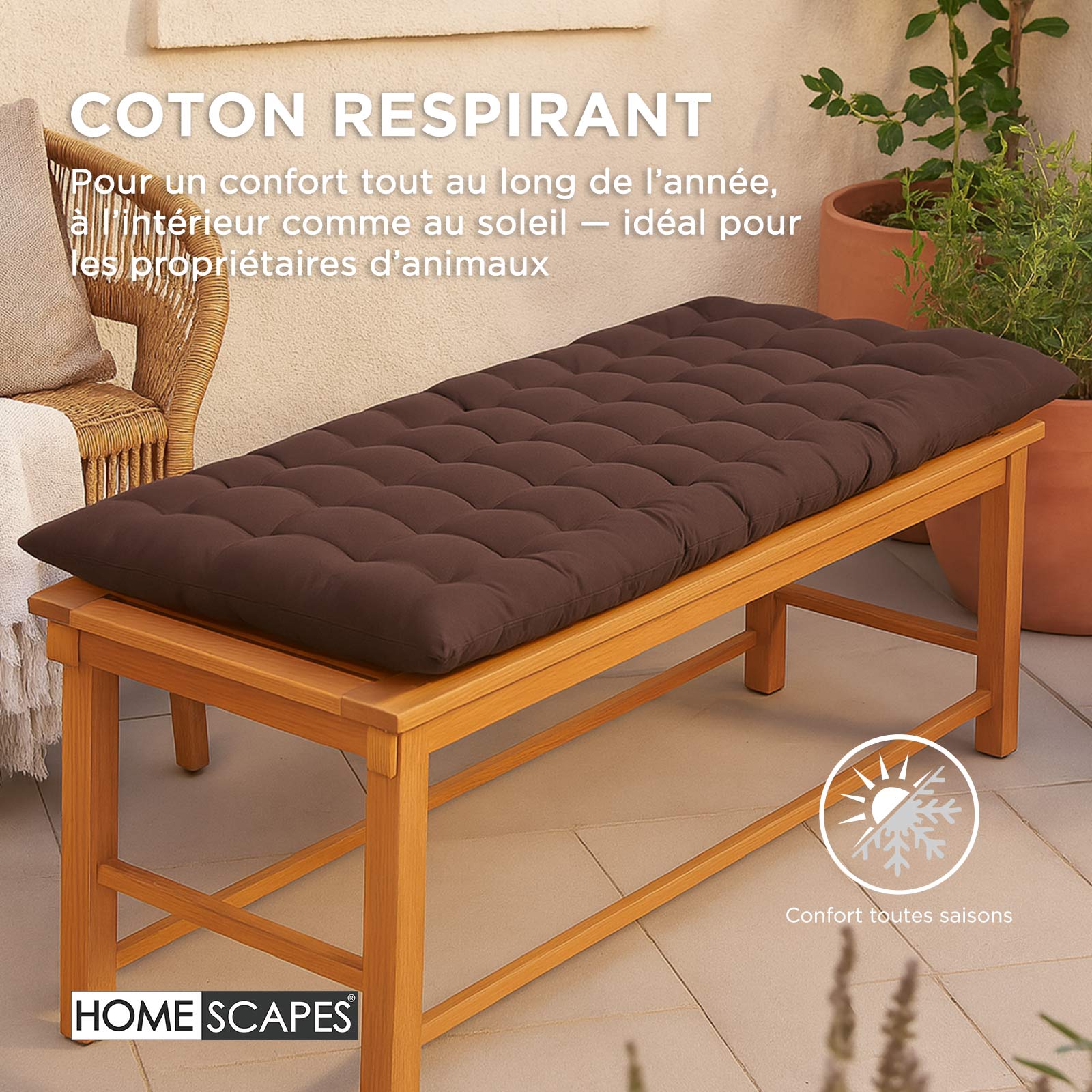 | Libellé | Coussin pour banc de jardin 2 places - 108 x 42 x 5 cm - Chocolat - Coussin pour banquette extérieure - Homescapes |