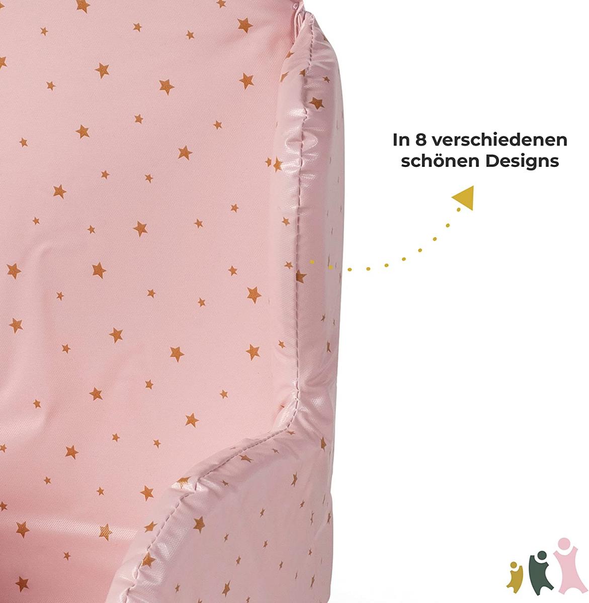 Réducteur de siège adapté aux chaises hautes Traveller, Nico et Mucki Le revêtement est en film plastique sans phtalates facilement lavable pour une surface toujours propre. Le garnissage est en polyester doux et hygiénique. Couleur : rose. Revêtement : 100% PVC. Dimensions : 23 x 25 x 30 cm. Garnissage : 100% mousse de polyuréthane. Livraison en 3 à 5 jours.