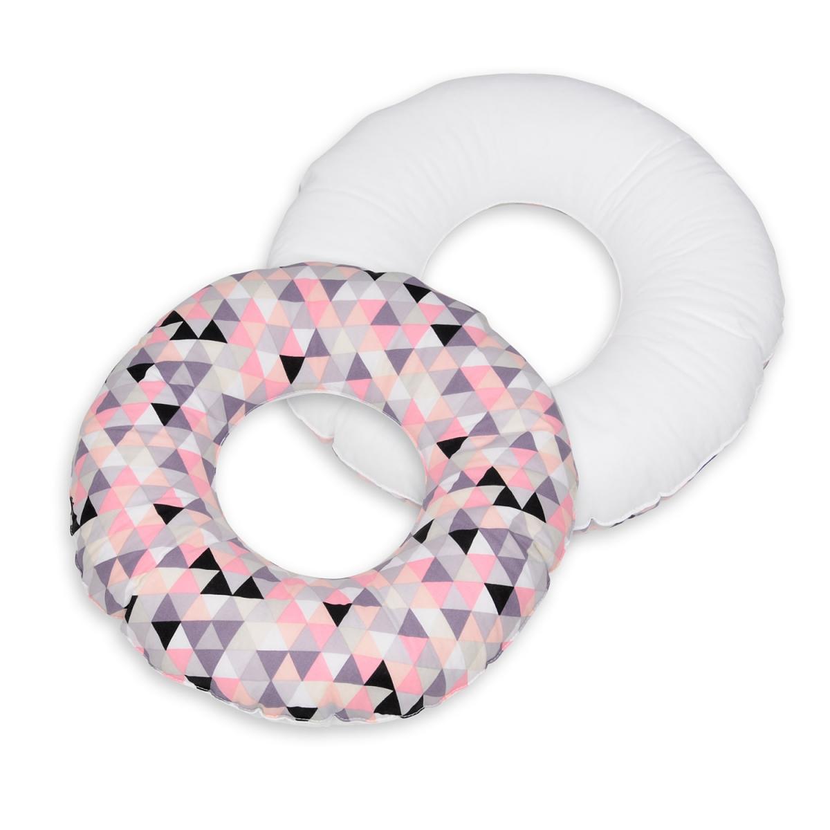 | Libellé | Coussin rond post natal triangles roses blanc |