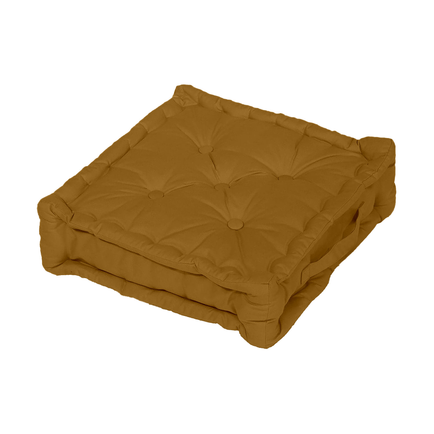 Le coussin tapissier uni PANAMA trouvera naturellement sa place dans votre intérieur. Finition: Doté d'une anse sur le côté. Piquage 5 points. Couleur: Moutarde. Composition: - Enveloppe: 100% coton - Garnissage: 100% coton. Dimensions: 50x50x10 cm. Entretien: Lavage en machine à froid.