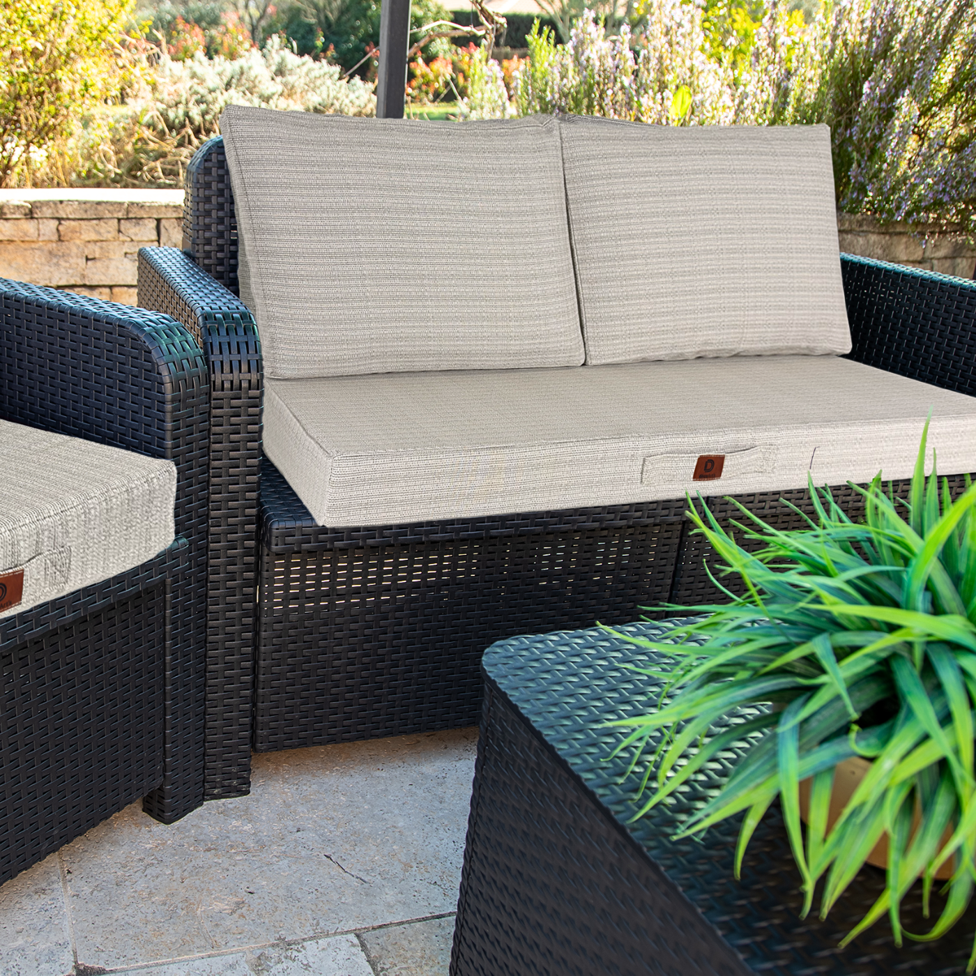 Facilité d'Entretien : Les housses déhoussables simplifient le nettoyage et l'entretien des coussins, assurant ainsi une longévité accrue et un aspect toujours impeccable de votre salon de jardin.