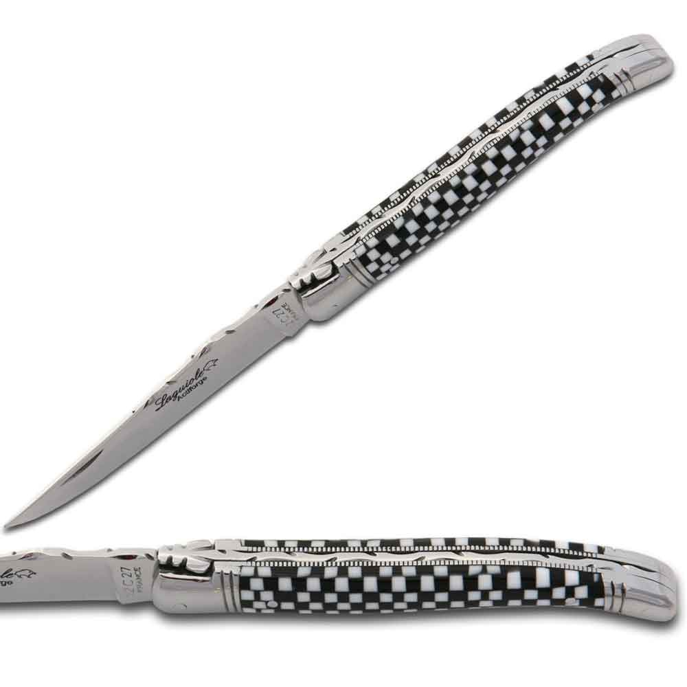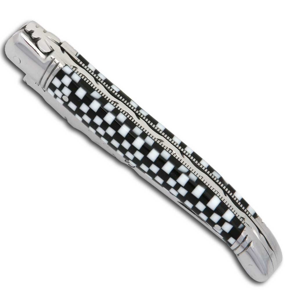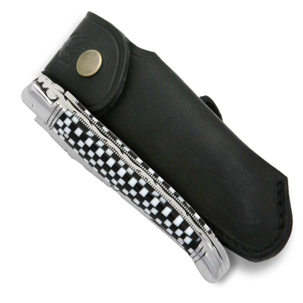 Couteau Laguiole en Cristallium façon damier avec étui cuir