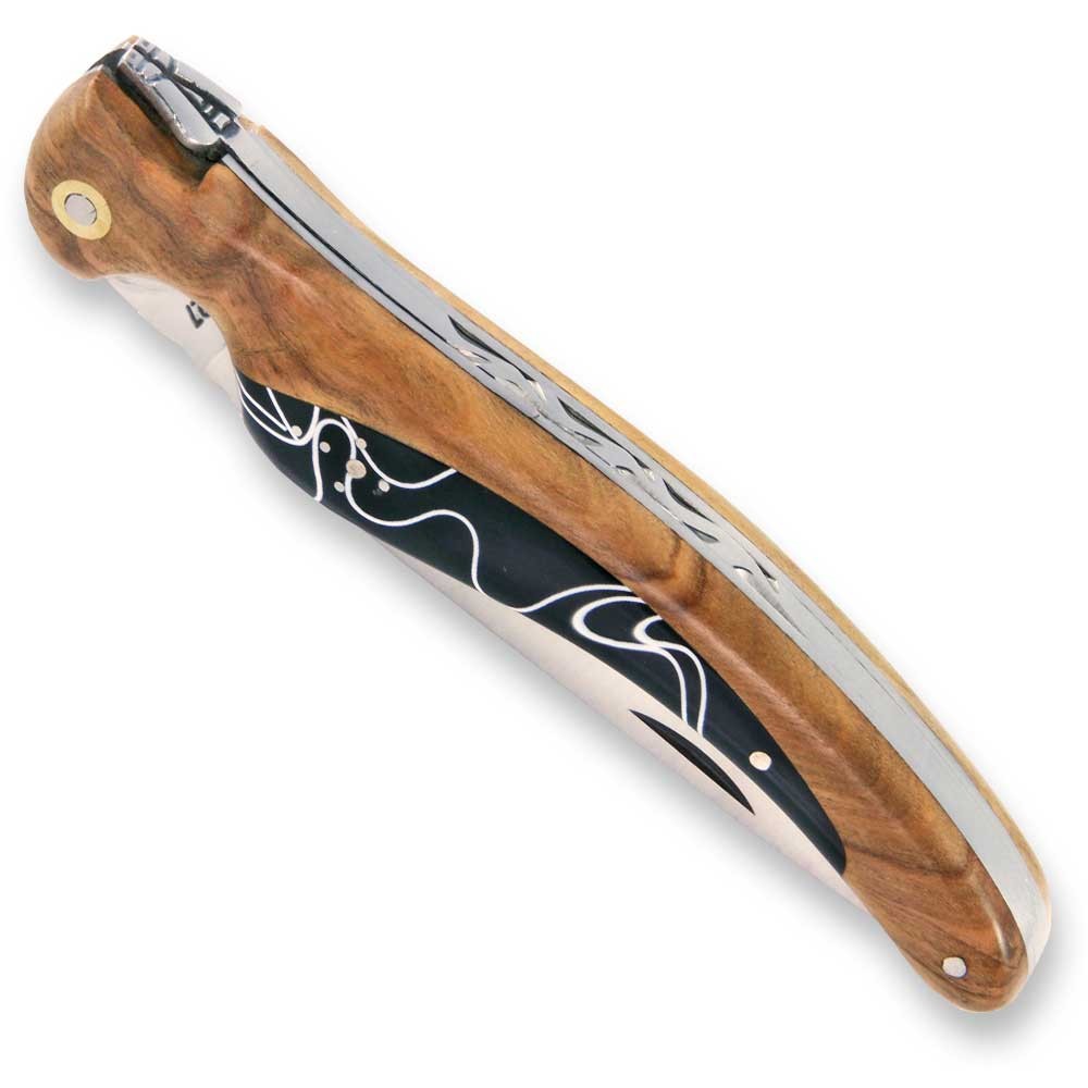 Couteau Laguiole oiseau graffiti en bois d’olivier et acrylique