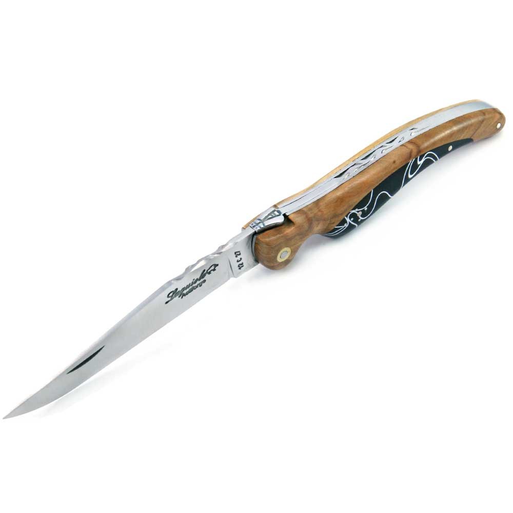 | Libellé | Couteau Laguiole oiseau graffiti en bois d’olivier et acrylique |